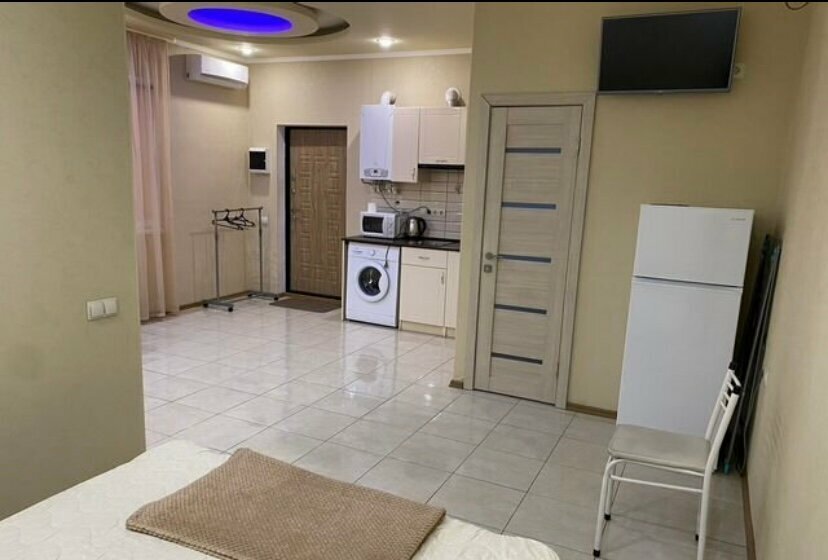 Отличные апартаменты. Чисто, душ, туалет, кухня, чайник, микроволновка, телевизор. Вежливый хозяин. Есть сплит. Теплые пол.