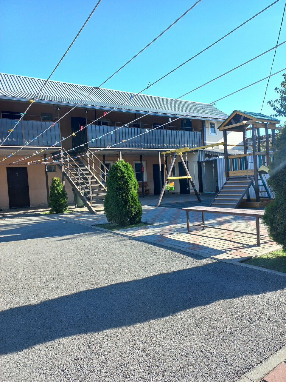 Останавливались здесь 28.05.2023 семьёй из 4 человек (двое взрослых и двое детей) в номере за 3500 тыс. Ехали из Москвы в Геленджик. В номере стояли одна двухспальная и одна полуторная кровати. Номер чистый, компактный, есть телевизор, белье чистое и белое. Ванная и туалет совмещенные, тоже все чисто, душевая кабина и сантехника новая и ничем не пахнет. Ужинать не стали, а завтрак платный и обошёлся на нашу семья 900 рублей, включая капучино))) есть небольшая детская площадка, чтобы дети могли выплеснуть энергию после дороги и полуоткрытая веранда, где взрослые могут тоже снять стресс и покушать. В целом, очень хорошее и достойное место, мы были приятно удивлены.