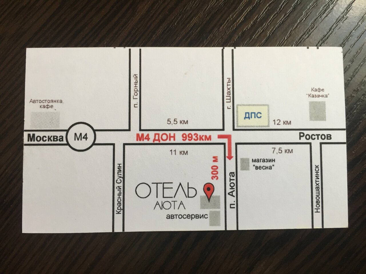 Гостиница «Аюта» расположена в городе Шахты по адресу: ул. Кооперативная, 45. Работает круглосуточно, без выходных.