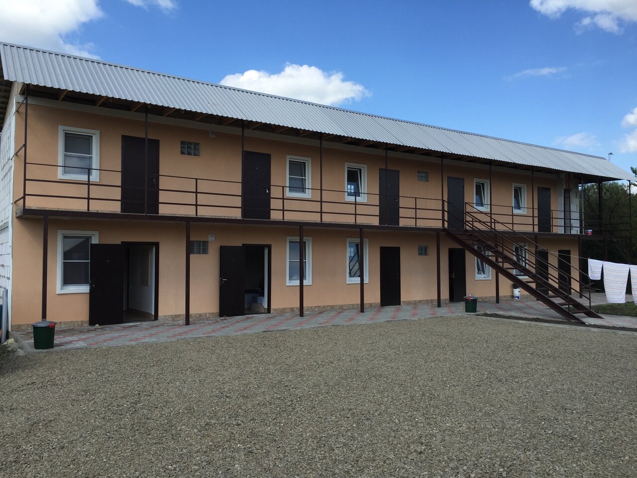 Отличное место. Бронь сделали за ранее. Все объяснили, все прислали. Не далеко от м4, рядом магазины. Есть столовая, которая работает до 23:00. Чайник, микроволновка которыми можно пользоваться. Двор чистый и уютный, для детей площадка, есть качели. Номера простые, чистые, кондиционер работает, душ и туалет в номере. Персонал отменный!!!!! Спасибо за настроение и хорошее впечатление!!!