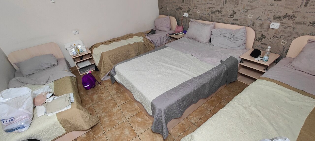 Уютная гостиница. Удобные матрасы и отличная звукоизоляция! Если вы ищете место, чтобы отдохнуть и выспаться, то вам сюда. Очень порадовало, что в номере с двуспальными кроватями есть дополнительные одеяла. Так же в номерах присутствуют одноразовые тапочки. На территории есть хорошая столовая.