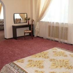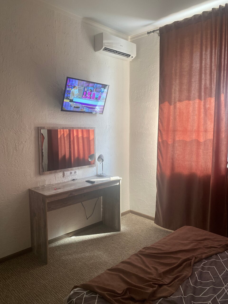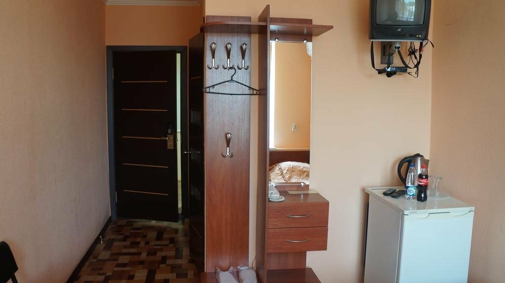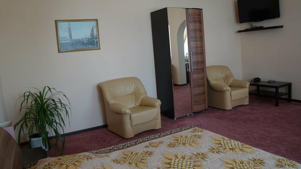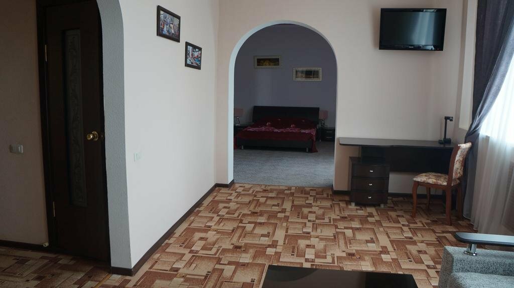 Останавливались в этом отеле по дороге на море. Мы бронировали двухкомнатный номер люкс. На ресепшн нас встретила улыбчивая приятная администратор, в номере чисто (хотя отель не новый), приятная обстановка, номер оснащен большим диваном на котором с лёгкостью разместятся 2 человека и двухспальной кррватью, телевизором, кондиционером, холодильником, чайником с чайными принадлежностями. В отеле предусмотрен завтрак, предлагается выбор из 4-х боюд, что очень удобно для путешественников. На обратном пути дрмой останаволись в этом же отеле и в том же номере ,и не разочаровались. Рекомендую.