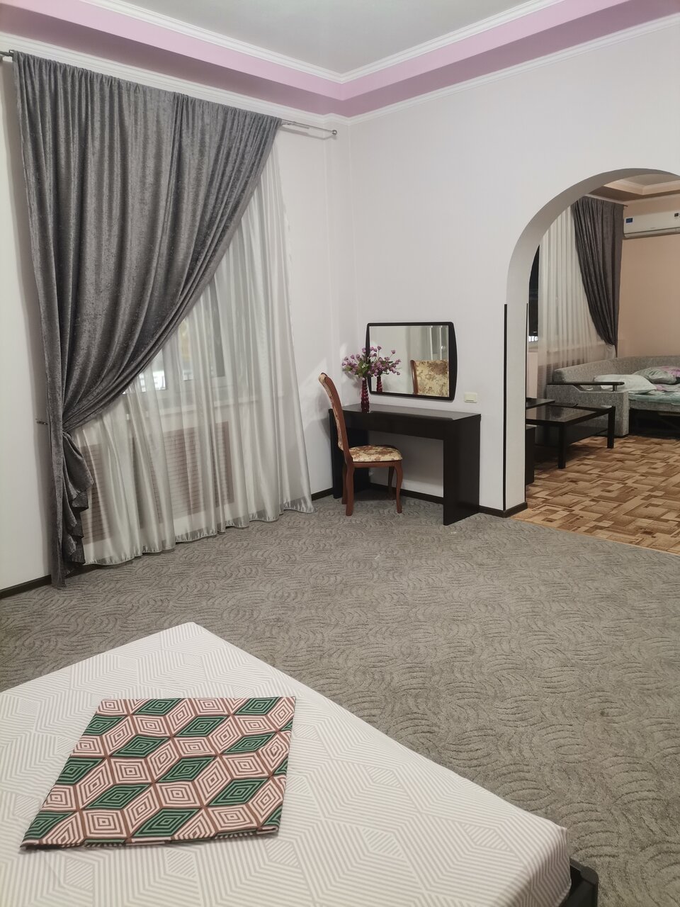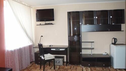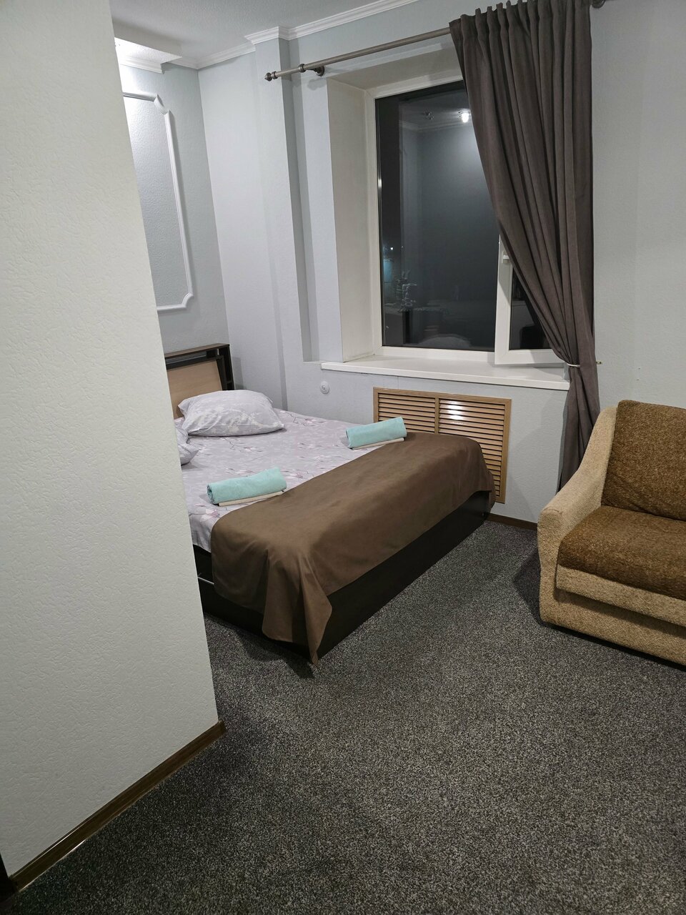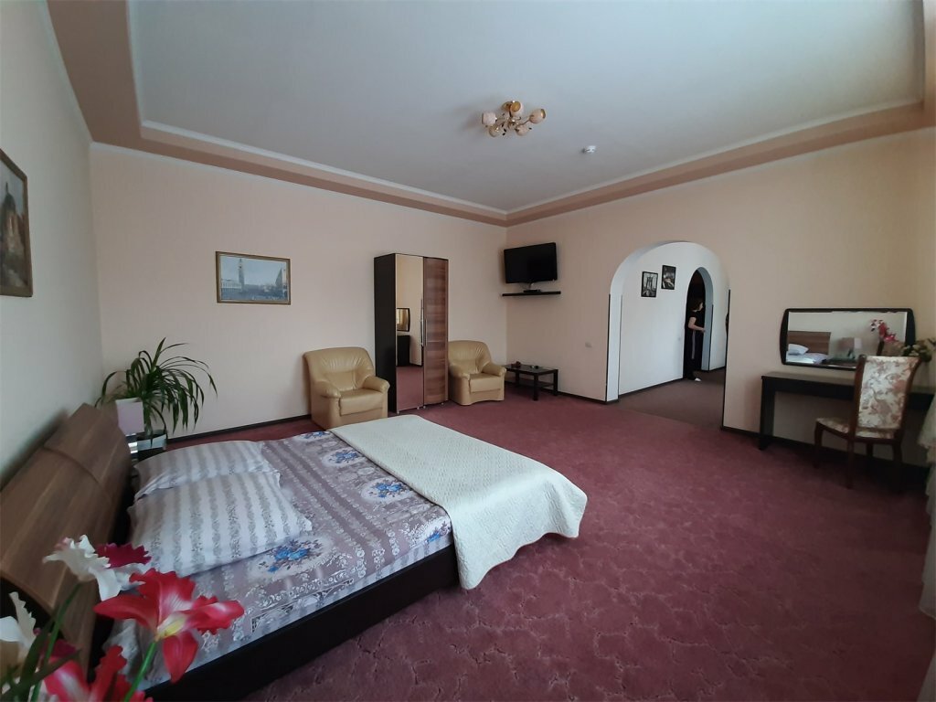 Останавливались в этом отеле по дороге на море. Мы бронировали двухкомнатный номер люкс. На ресепшн нас встретила улыбчивая приятная администратор, в номере чисто (хотя отель не новый), приятная обстановка, номер оснащен большим диваном на котором с лёгкостью разместятся 2 человека и двухспальной кррватью, телевизором, кондиционером, холодильником, чайником с чайными принадлежностями. В отеле предусмотрен завтрак, предлагается выбор из 4-х боюд, что очень удобно для путешественников. На обратном пути дрмой останаволись в этом же отеле и в том же номере ,и не разочаровались. Рекомендую.