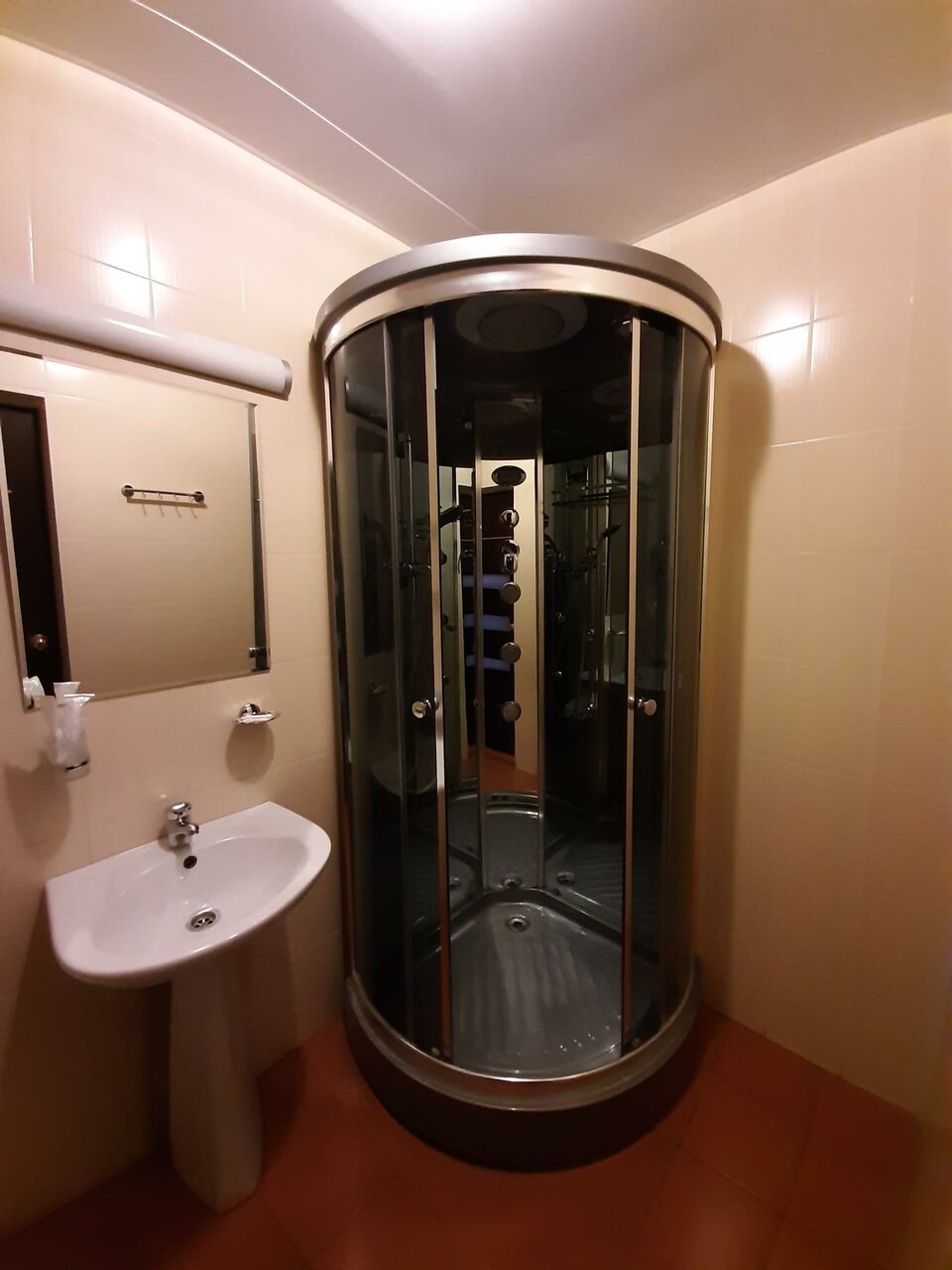 Расположение,удобно для путешествующих на юг на автомобиле. Недалеко от трассы М4, 1,5км. Парковка во дворе терминала. Номер лучше выбирать с окнами во двор,если спите чутко. Завтрак приготовили быстро,ждать долго не пришлось ,минут 10мин. В номере чисто. Вода в душе была в норме. Единственное замечание- телевизор маловат. В общем,номер соответствовал стоимости.
