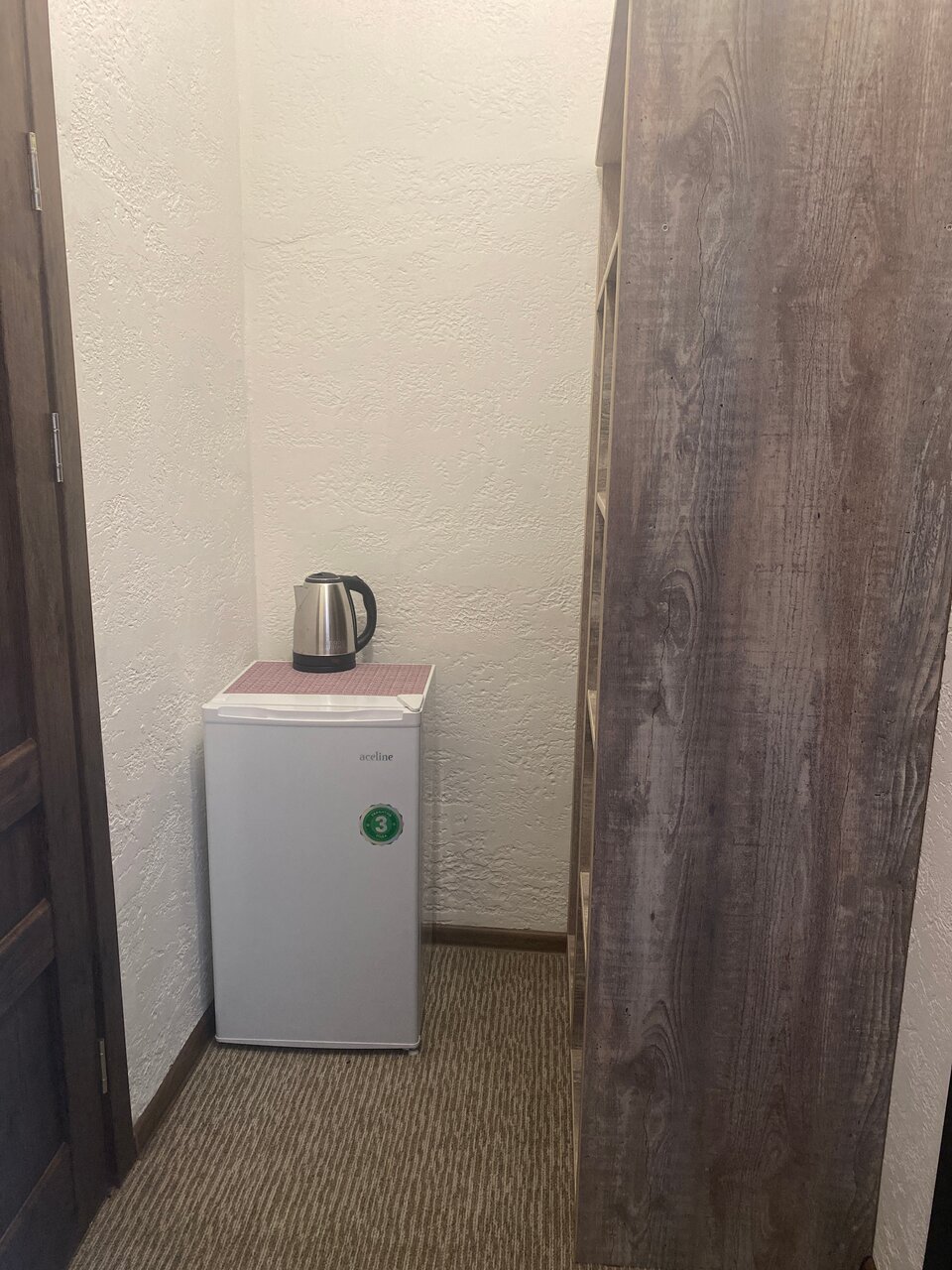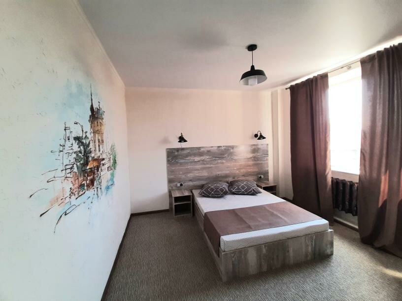 Заезжали переночевать по дороге домой. Ну на одну ночь можно. Есть кондей, громкий холодильник и очень маленькое кресло из ссср, на котором не каждый постоялец поместится. Очень понравилась еда в кафе и суп и пюре и спагетти с салатиками получили огромное удовольствие.