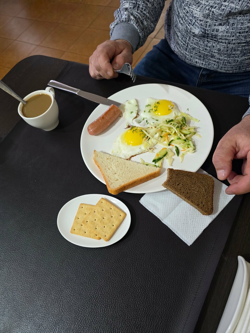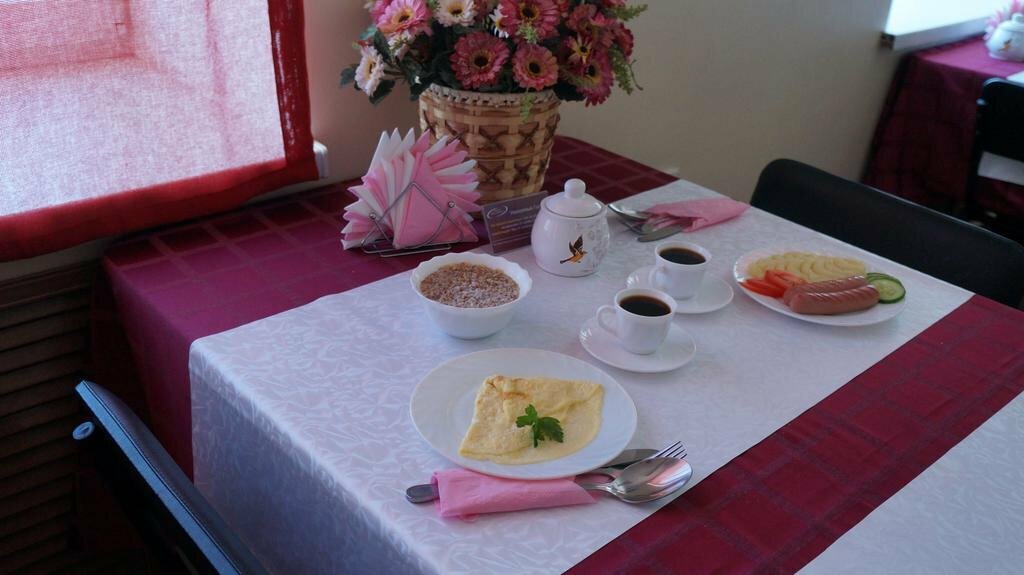 Номер не плохой. Есть чайник, телевизор, мыльные принадлежности. Завтрак вкусный. Можно выбрать один из четырех вариантов. Есть охраняемая парковка. Персонал приветливый, быстро заселили.