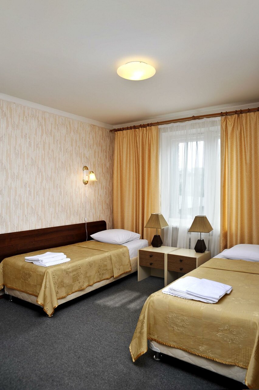 Стандартный двухместный номер общей площадью 21 м. кв. отвечает всем требованиям комфортам для деловых путешествий. Данная категория подойдет двум персональным гостям с отдельной зональностью для сна. В каждом номере: две односпальные кровати, 2 прик