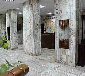 Ночевали одну ночь в эконом номере с удобствами на этаже. Номер чистый, большой с кондиционером. Есть холодильник в общем коридоре на несколько номеров. Сама гостиница такая монументально- мраморная))) наверняка в ней останавливался сам Хрущов)) Персонал очень душевный, особенно в столовой. При гостинице большая крытая парковка.