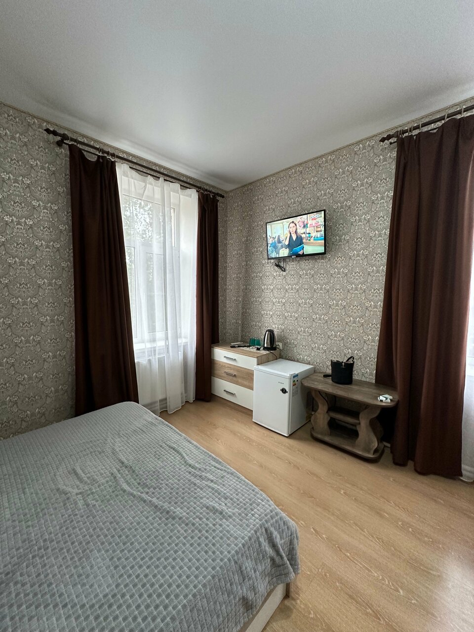 Отличный отель! Приехали в полночь, нас встретили девушка на рецепшн и даже горничная. В отеле и в номере очень чисто, симпатично. Есть парковка под камерами во дворе и снаружи здания. Продаётся вода, есть автомат кофе, еда и все необходимое. В номере даже был зубной набор и холодильник! Кондиционер работает, звукоизоляция тоже хорошая, соседей не слышали. Вода из крана питьевая, по желанию наливают в чайник бутылизированной. Из плюсов есть возможность оплаты картой! Обязательно еще будем останавливаться и рекомендовать друзьям!