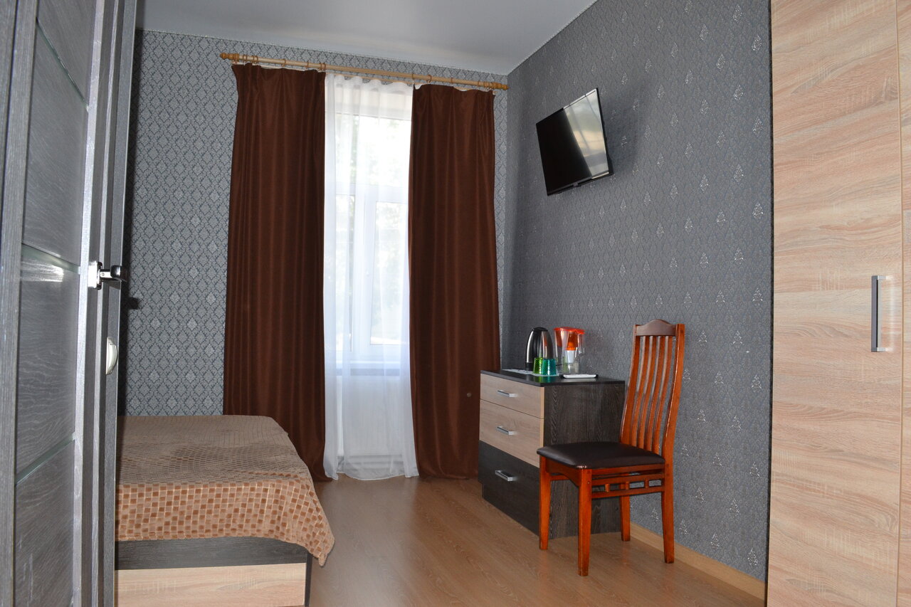 Услуги: — Номера с кондиционером, Wi-Fi, телевизором, холодильником, феном, санузлом. — Бесплатная парковка, общая кухня, бар, салон красоты. — Возможно заселение с детьми (люльки/кроватки), допместо — платно. — Чай/кофе в номерах, халаты, тапочки, мини-бар, уборка. — Цены: от 2500 ₽/час, 2500–4500 ₽/ночь. Выезд до 12:00.