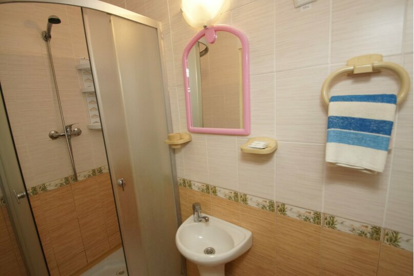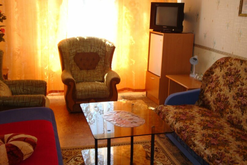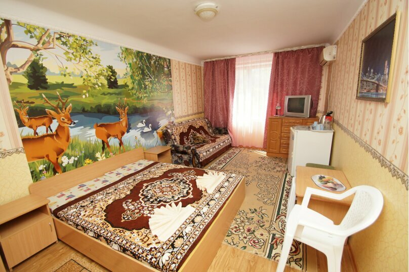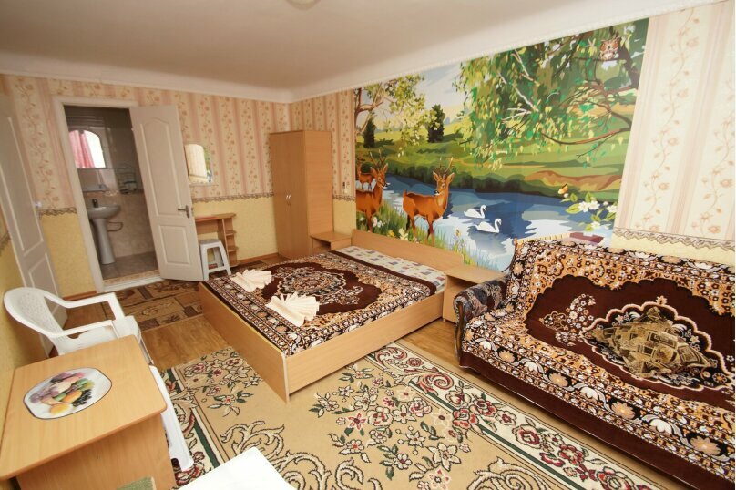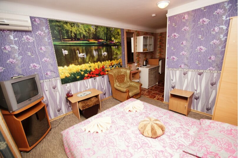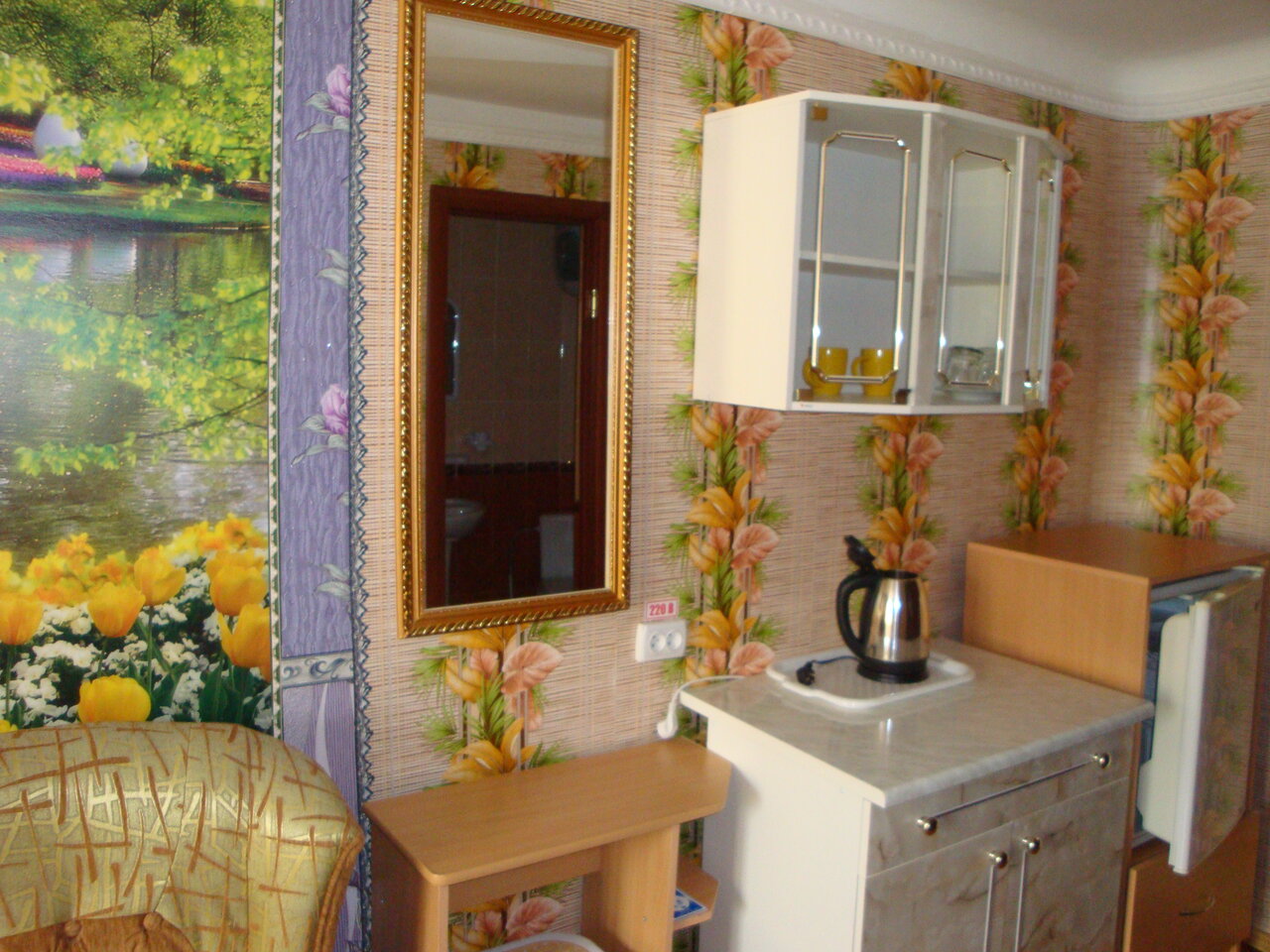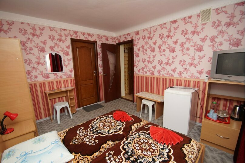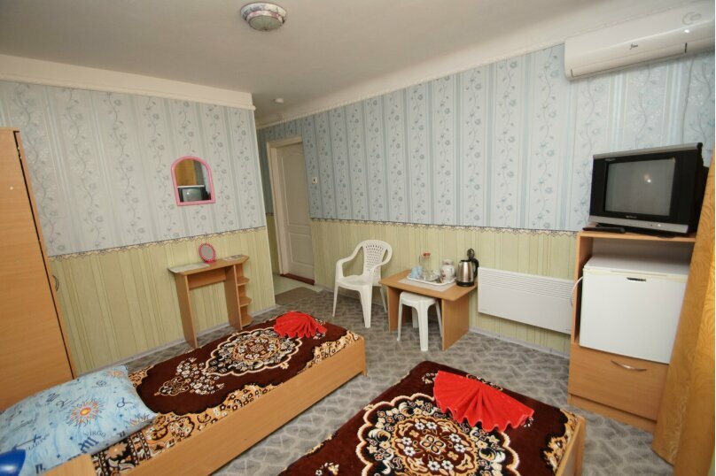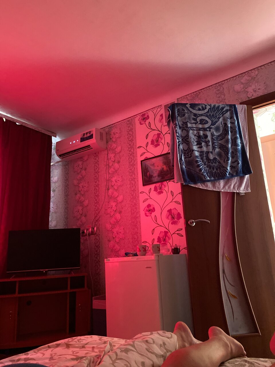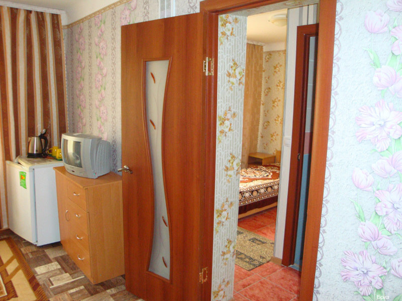 - Чистые номера, ежедневная уборка.; Недорогие цены за проживание.; Наличие комнаты для сушки и глажки белья.; Близость к морю (10 минут пешком).; Наличие кондиционера, холодильника, телевизора.