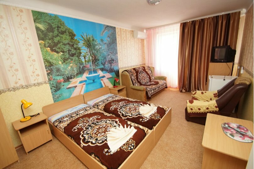 Останавливались в отеле на сутки проездом. Цена за троих 2100. Номер 2х комнатный. Дизайн 90х, но очень уютно и чисто. Кондиционер, холодильник, мыло, шампунь, посуда, чайник. Удобные матрасы и постельное. Тихо. Много отдыхающих, тк пляж рядом .