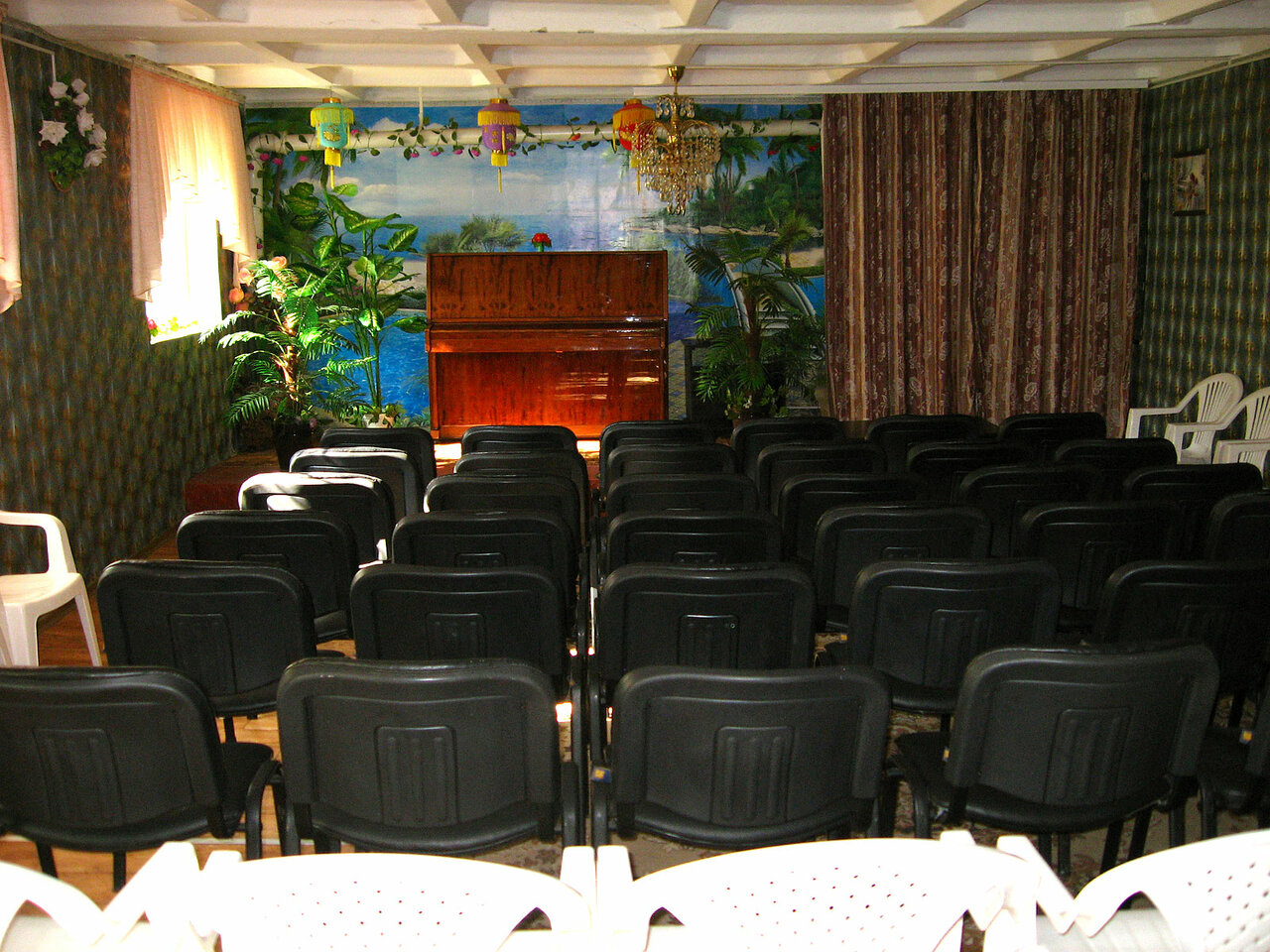 Светлый и легкий дизайн банкетного зала, отсутствие перегородок, создают атмосферу душевности и единения посетителей. Рядом расположены исторический Барский пруд, липовая аллея и Большой остров. Сотрудники ресторана организуют любое мероприятие.