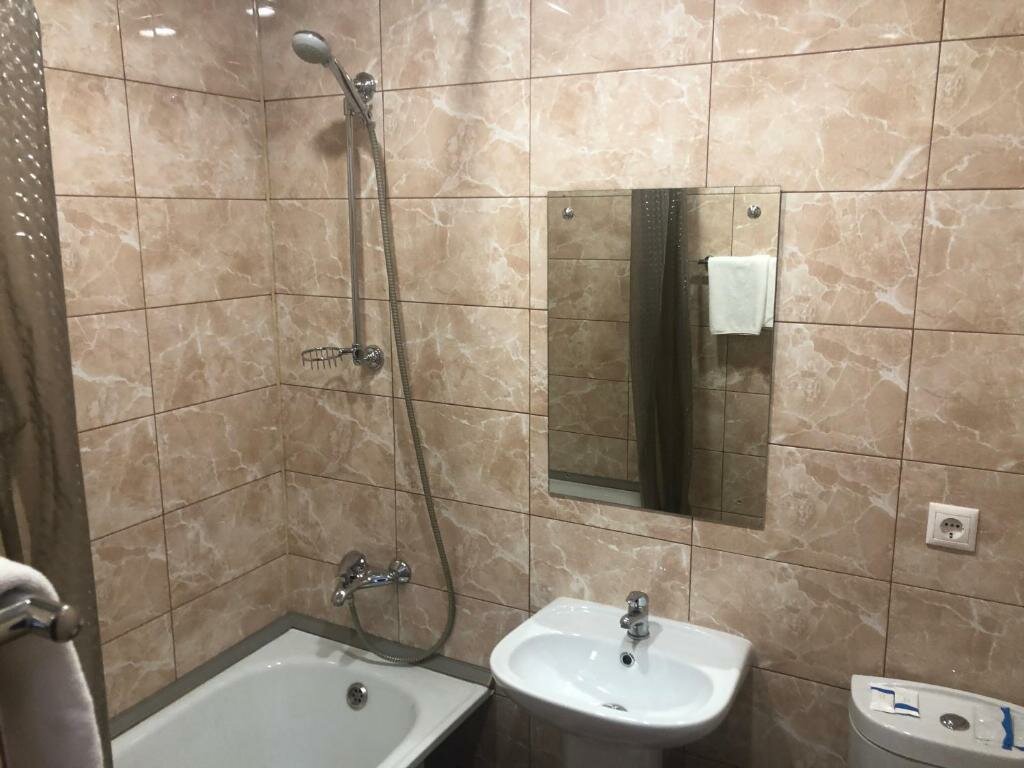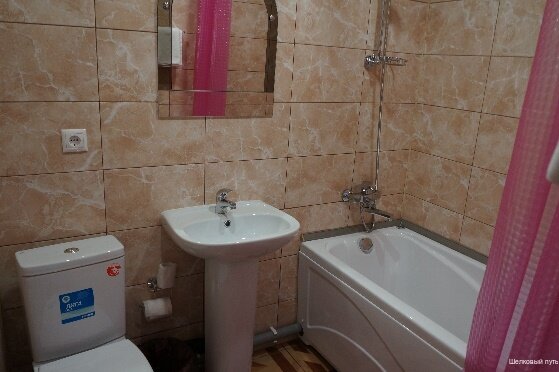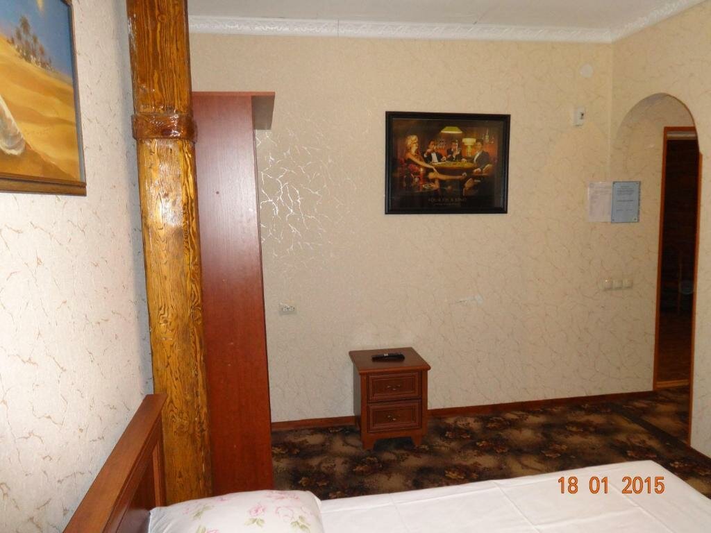 Придорожная гостиница. Расположена на 2 этаже. Вариант на 1 ночь,не более. Слышимость такая что разговоры из коридора и соседней комнаты слышны отчётливо. На завтрак яичница и булка с маслом. Ремонт старый , сан узел старый. Не рекомендую.