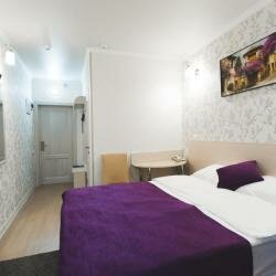 Стоимость номера завышена, то что называется ‘завтрак’ — чай/кофе плюс йогурт с печенюшкой и сырком, уж лучше бы вообще не предлагали. Состояние номеров удовлетворительное, сигаретами не пахнет,но в некоторых балконные двери продуваются и заклеены малярным скотчем
