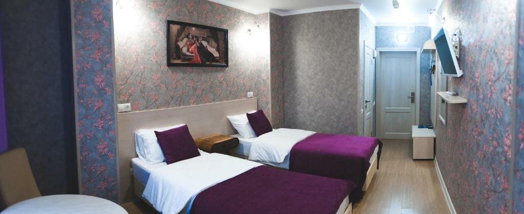 Номер нормального размера, чисто, каждый день убираются. То что в отеле есть завтрак это слишком громко сказано. На завтрак йогурт,сырок и круасан. Чай кофе круглосуточно. Жил в 4 номере, в нём постоянно пахло куревом из-за того что балкон совмещённый с соседним номером. По соотношению цена качество 5. Близко к ж/д станции, но далеко от центра города. Есть кухня без плиты, но с микроволновкой, есть посуда, мало столовых приборов особенно вилок.