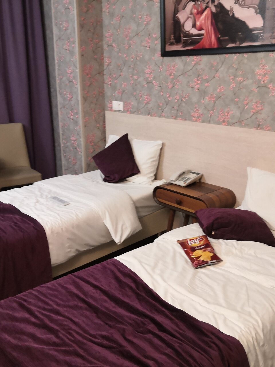 Были вынуждены остановиться в данном отеле пару недель назад. Питьевой воды нет, хотя администратор по телефону уверял что вода есть фильтрованная. Из крана вода пахнет, явно не питевая. Состояние номеров не айс. К уборке претензий нет, но постельное и полотенца заметно поизносились. От одного полотенца пахло сыростью, явно не досушенное сложили. Лейка душа закреплена так, что бьет струей в противоположную стену, не намочить голову не реально использовать капец как сложно. Завтрак вообще смешно- глазированный сырок и йогурт выложены на столе в 7 утра без холодильника, на улице до 35 было днём. Мы не рискнули пробовать. Окно в номере выходит…. в коридор((( единственное за что можно сказать спасибо это работающий кондиционер) Самое главное, что послужило причиной написания такого отзыва это хамское поведение администратора на стойке. В следующий раз лучше вызовем такси и поедем в другой отель. Сюда больше ни ногой