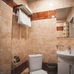 Номер 14 кв.м. с балконом. В номере имеется все необходимое: Wi-Fi, санузел с душевой кабиной, комплект полотенец, шампунь, мыло, телевизор, холодильник. На этаже расположен кулер с водой и гладильная доска с утюгом. Столовая на первом этаже.