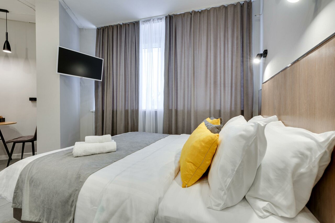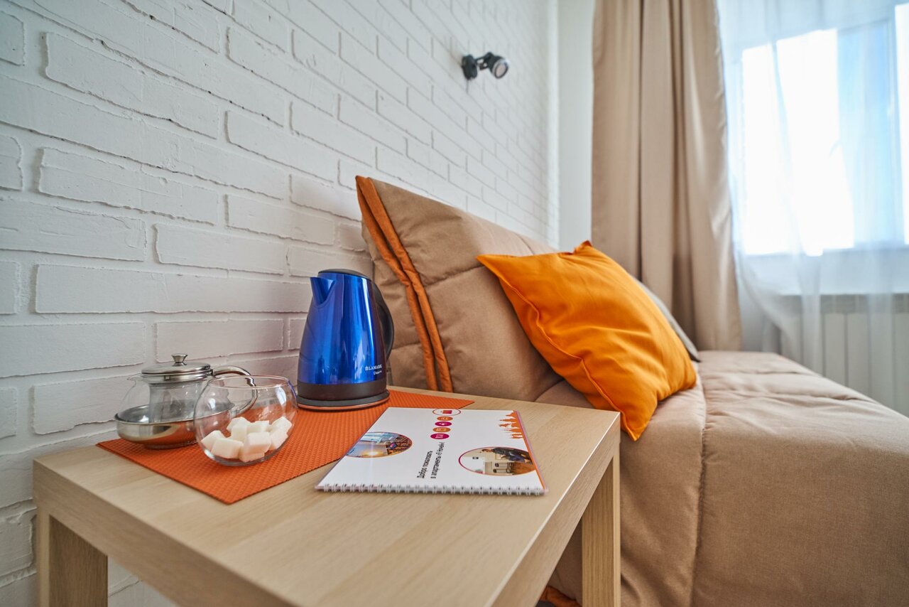 Апартаменты 'Комфорт' на 1-2-х человекИнтерьер выполнен в спокойных тонах и располагает всем необходимым для комфортного проживания Все номера оборудованы умными замками, поэтому возможно удаленное заселение в любое удобное время