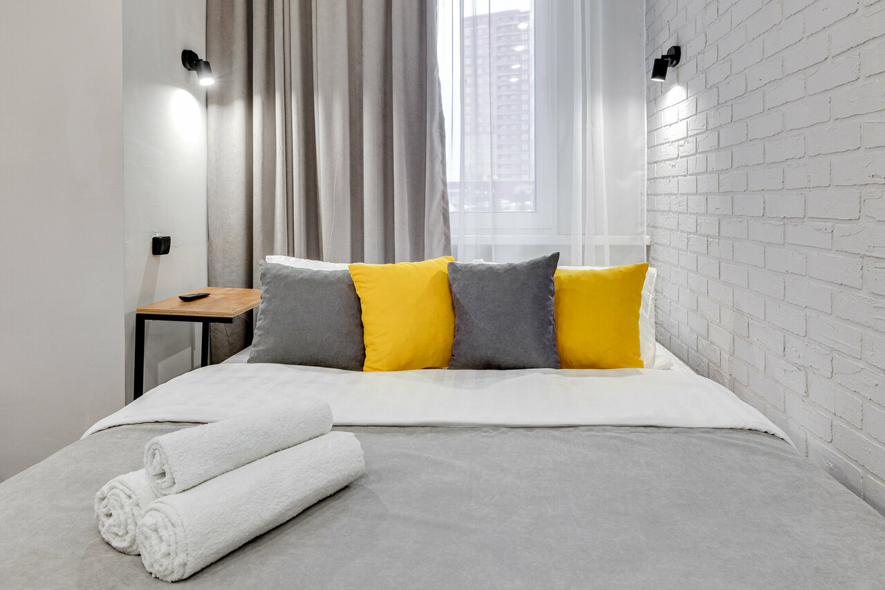Апартаменты 'Эконом' на 1-2-х человекИнтерьер выполнен в спокойных тонах и располагает всем необходимым для комфортного проживания Все номера оборудованы умными замками, поэтому возможно удаленное заселение в любое удобное время