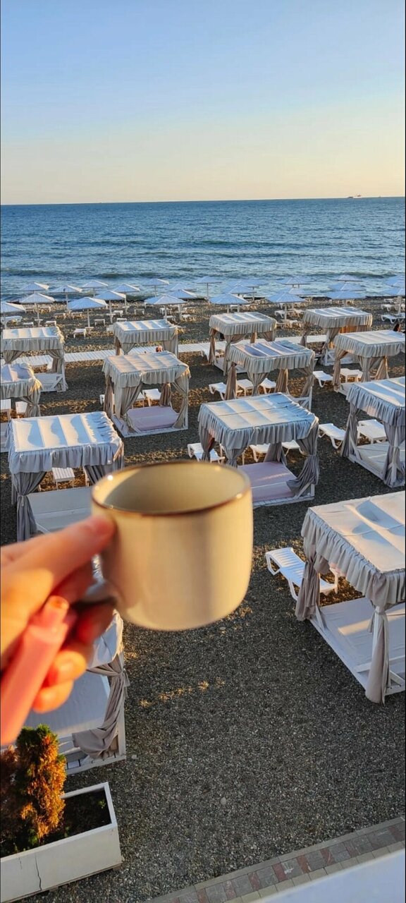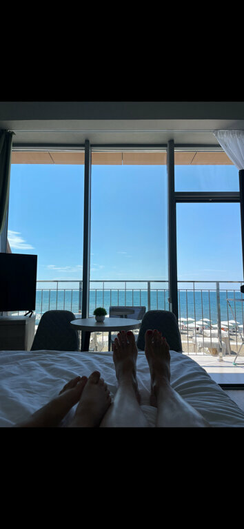 Очень понравился отель. Выбрала его по отзывам и не прогодала! Стильный современный. Уютные номера, чистота, продумано всё до мелочей, есть даже тарелки и кружки. А также полноценный холодильник, стиральная машинка, микроволновка, плита. А расположение отеля это просто сказка. Прям на пляже, панорамные окна позволяют насладиться шикарным видом на море. Очень приветливый персонал, у мужа был День Рождение — поздравили огромным тортом и открыткой. Очень приятно! Обязательно вернёмся к вам.