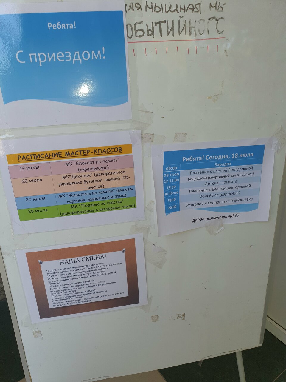 - Развлекательная программа (дискотеки, зарядка, фильмы, экскурсии).