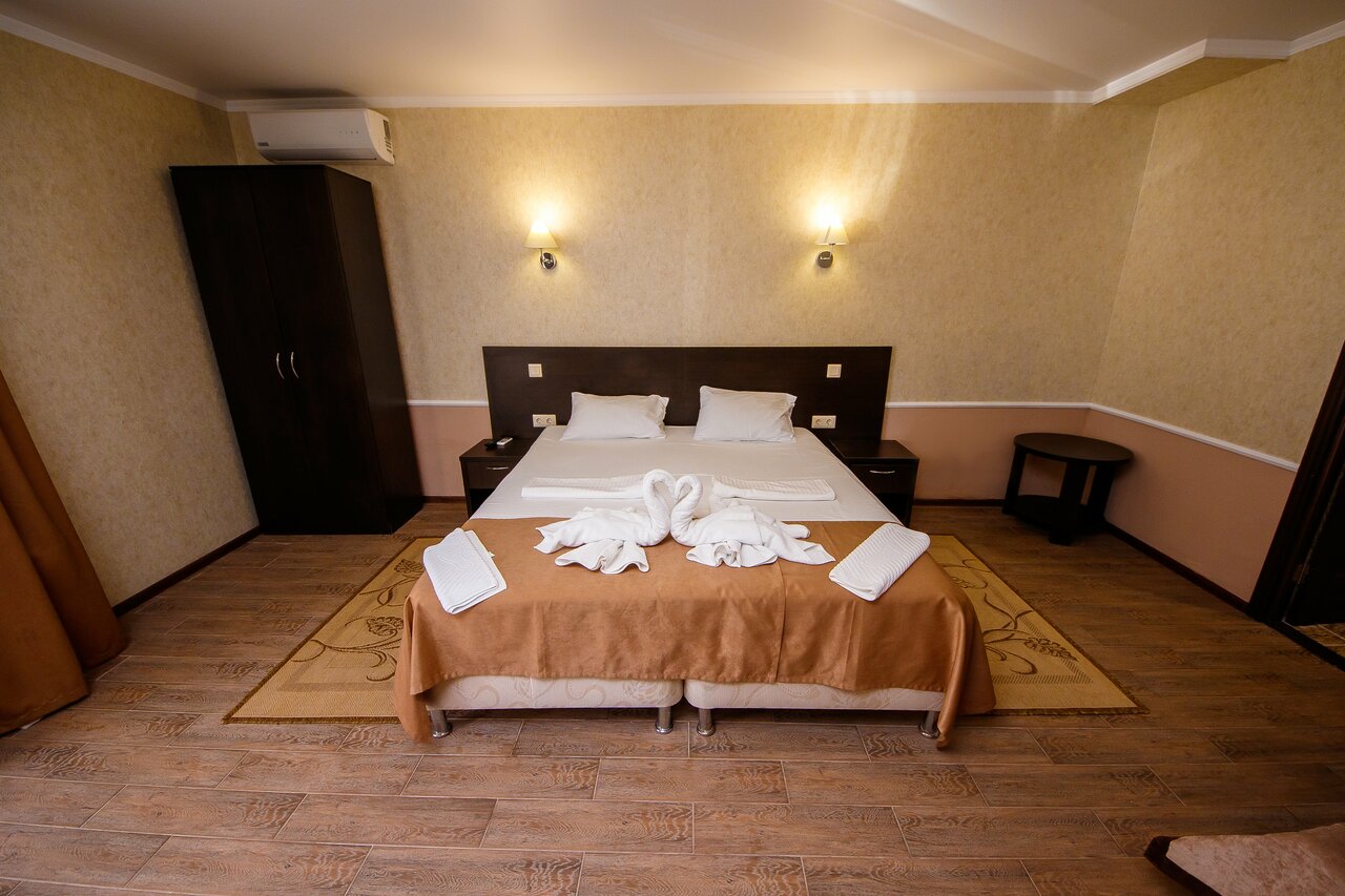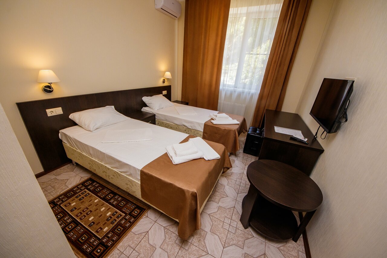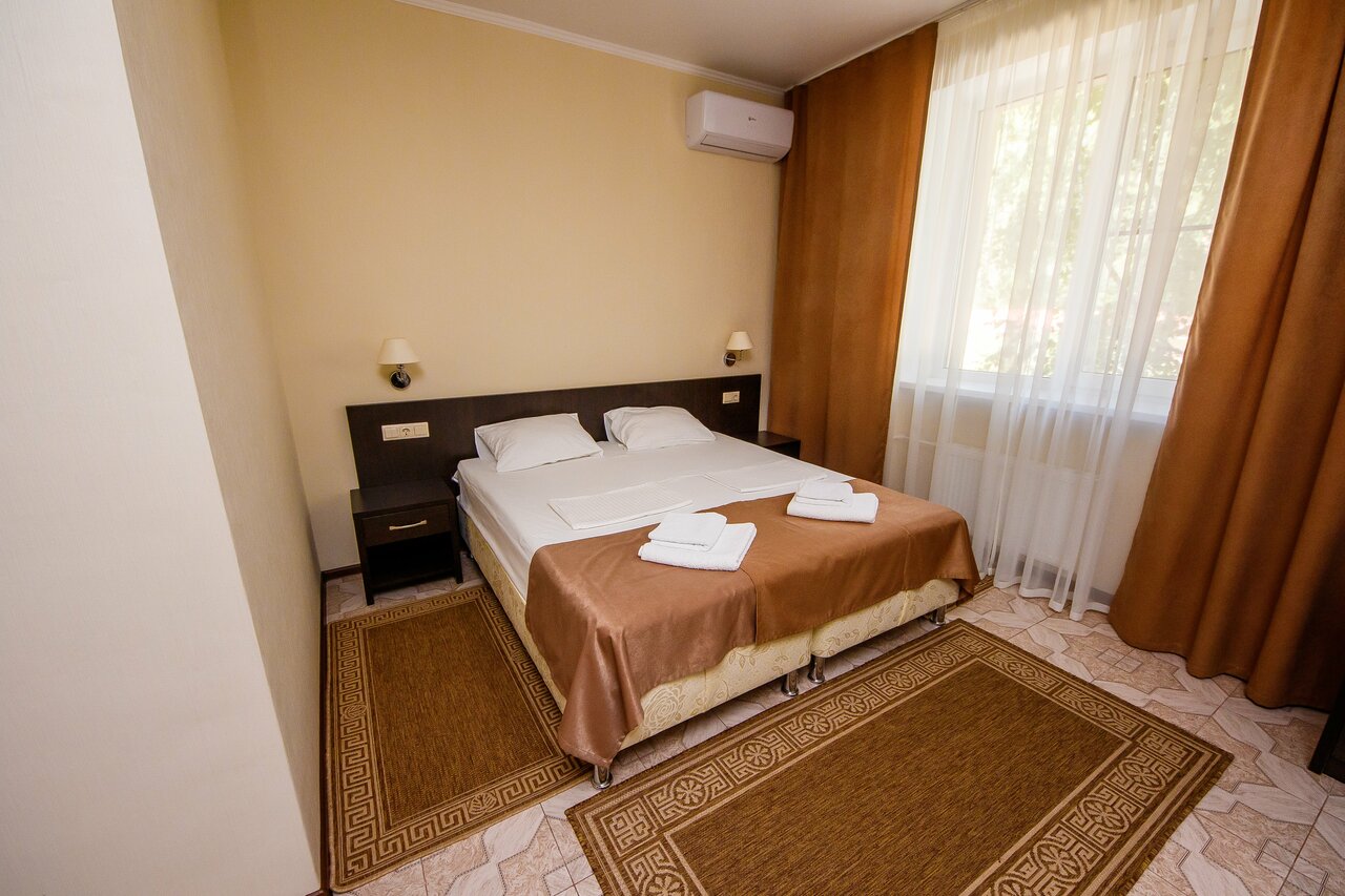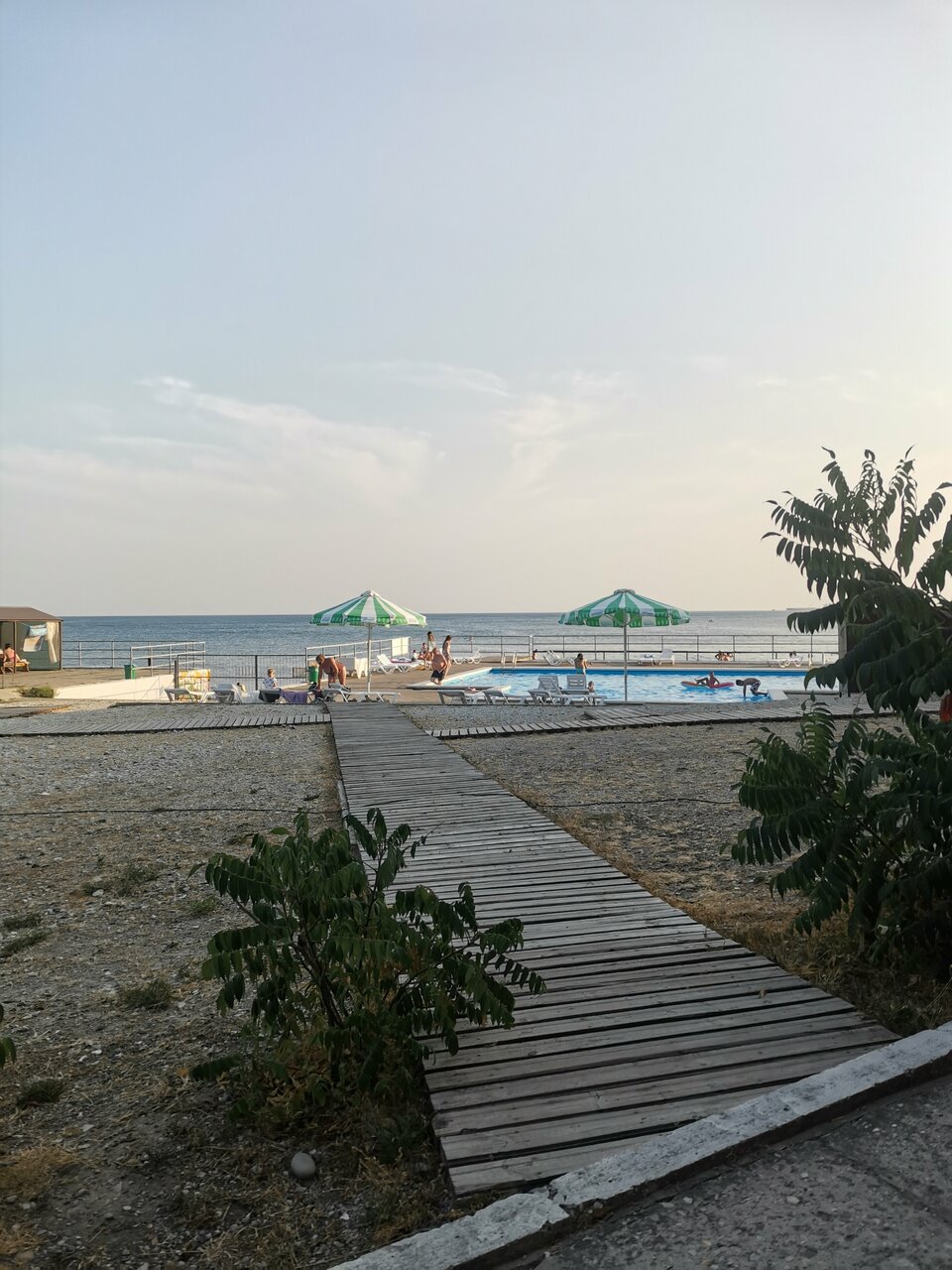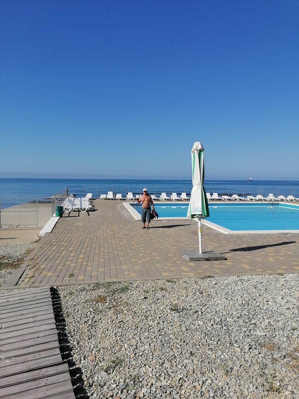 Не рекомендую! Грязно очень. Полотенца не меняют, гигиенические принадлежности(шампунь, гель для душа, мыло)не выдают, в номерах не убираются. Ночью-это нечтоприезжают местные забулдыги и пьянствуют целую ночь. Режима тишины нет. При отеле есть кафе/столовая.. отвратное место..вонючее.. еда не свежая, выбора нет, грязная посуда. Администратор заинтересована только в деньгах. Зона отдыха/мангальная зона=3000руб. Сам мангал тоже платный. Лежаки сломанные. Зонтов/укрытия от солнца нет совсем. Только в зоне у бассейна 3 зонта..А бассейн..-одно название.. грязь сплошная. Воду не меняют. Добавляют токсичную химию ночью и всё. ‘С улицы’ любой может зайти и поплавать в этом ‘бассейне'(естественно, заплатив копейки)- Это чтобы вы знали, какая там грязь и инфекции скапливаютсяМоре при отеле грязное. Как сказали местные, именно в этом месте сливается грязь. Поэтому лучше идите на общественный! Он идеальный. Чистейшее море и хороший вход. С детьми идеально. А в этот отель больше ни ногой