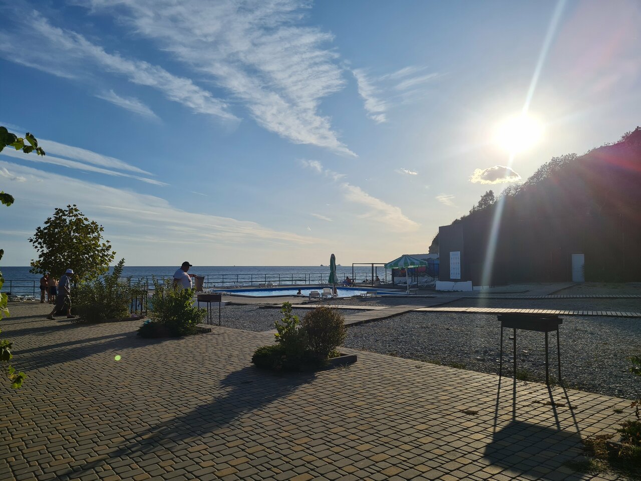 Хорошее место для отдыха, вкусная еда, бассейн, выход к морю, есть место для детей, красивые закаты, персонал всегда старается идти на встречу и помогает если есть вопрос, есть на прокат инвентарь, чтобы хорошо провести время, к морю можно выйти в любое время, удобный спуск в воду, очень красивое место