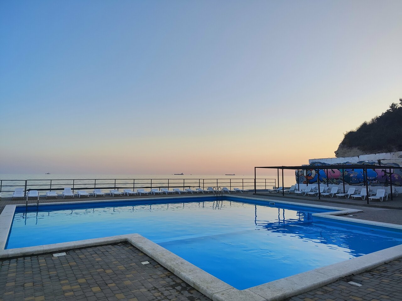 Свой бассейн, вход в море только с пирса. Номерной фонд отремонтирован. В столовой постоянно обсчитывают и еда так себе, но на пляжной линии много кафешек