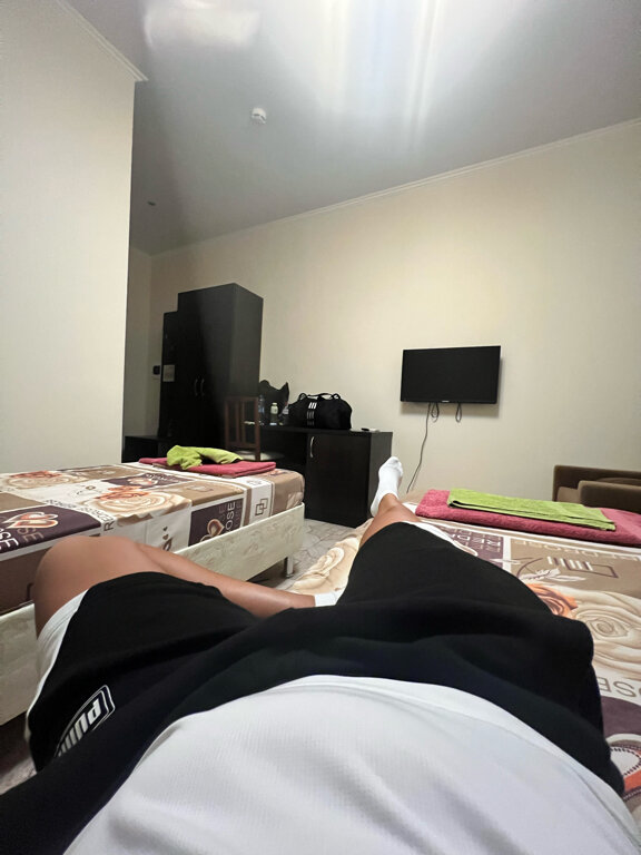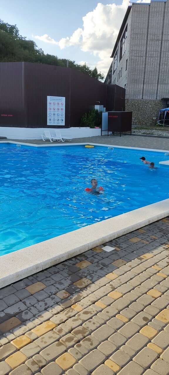 Отдыхали с 3 по 9 сентября 2023г. Стоимость номера 4 тысячи, а место на троечку. Плюсы: своя территория, бассейн (хотя я им воспользовалась 1 раз), столовая за отдельную плату, но вкусно и недорого. Минусы: 1.Контингент оставляет желать лучшего, могут сидеть в беседке до 2:00, будет играть громко музыка, раздаваться матерные крики и администрация ничего не предпринимает. 2.Однообразная еда в столовой. 3.Уборка по запросу, можно в мусоре зарыться, ключи надо приносить на ресепшен. 4. На территории есть одно заброшенное здание, видимо, стоит с дальних временных без окон, но очень удручающий не презентабельный вид. 5. Лестничные проемы и общие коридорные зоны ни разу не мыли за 5 дней. И когда заказывали уборку в номере не помыли полы на балконе, а они были не чистыми. Лично для меня отдых на один раз. Больше не приеду. Считаю цена за номер в таком отеле завышенная. Максимум 3 тысячи.
