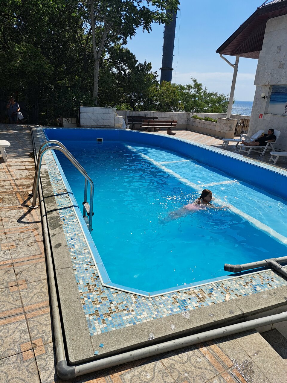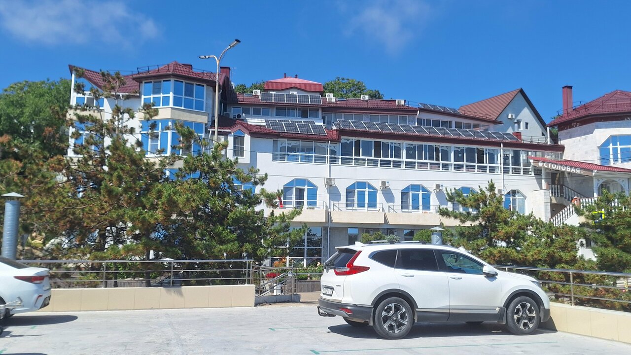 Отдыхали в июле 2023 года семьей с 3 детьми. Сначала жили в однокомнатном номере (5500 руб. в сутки), потом переехали в двухкомнатный (6000 руб. в сутки). Впечатление приятное: уборка в номерах ежедневно и качественно. На территории бассейн, чистый, шезлонги. Персонал приветливый, отзывчивый на просьбы. Отель расположен на горе: чтобы дойти до моря, нужно спускаться вниз по лесенкам. Есть удобная бесплатная парковка для автомобиля. Вечером можно поиграть в теннис или бильярд. У нас был вид на море, просыпались под шум волн, видели дельфинов. Территория отеля ухоженная. В отеле есть столовая. Меню скудное, завтрак 300 руб/чел, комплексный обед 500 руб/чел. Нам не понравилось, кушали в других кафе. В целом впечатление об отеле положительное.