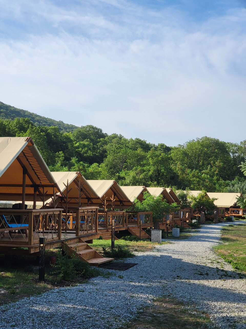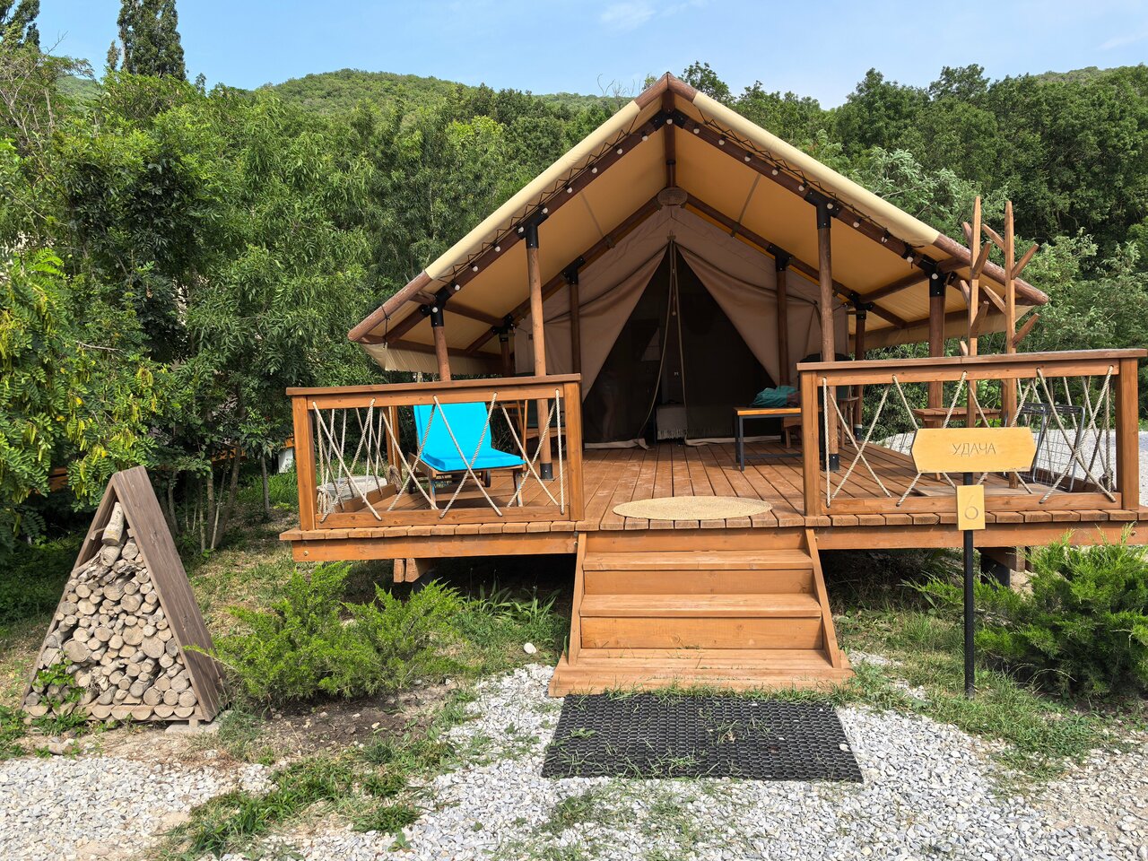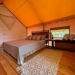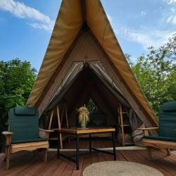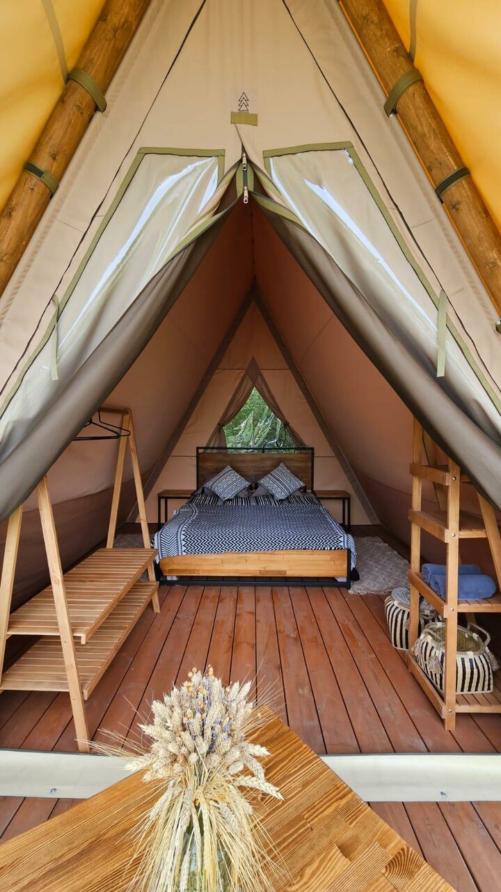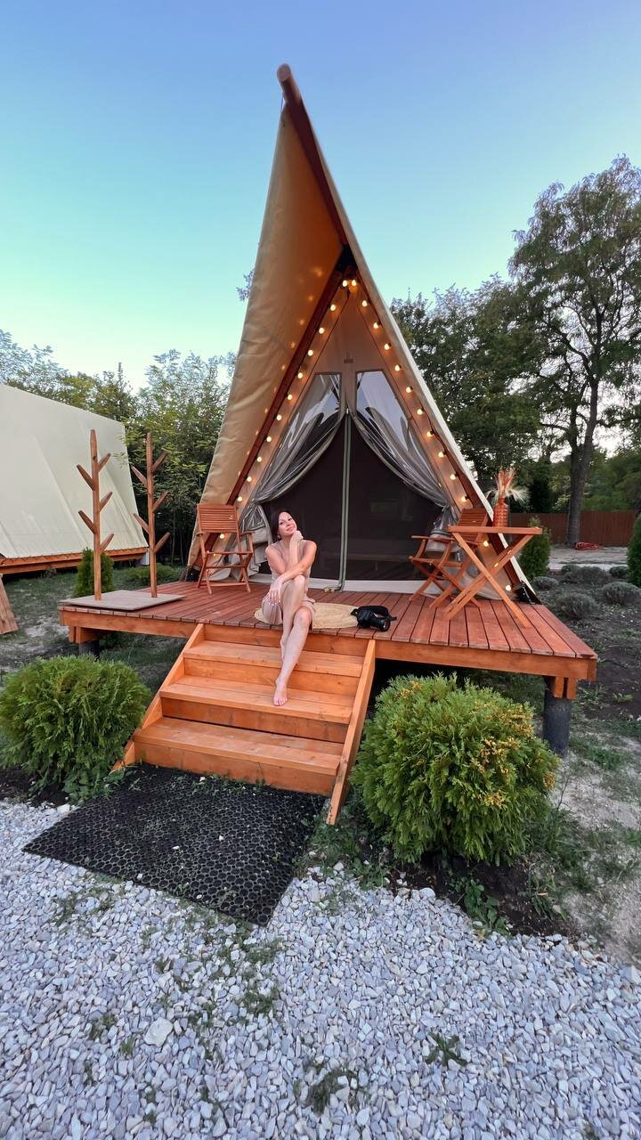 Замечательное место будет, когда все закончат. Сейчас ещё многое готовится, но персонал ОЧЕНЬ клиентоориентирован. Это подкупает, а также прекрасная природа, тишина, воздух. Жаль, что нельзя с животными. Очень приятно, что на море возят, дорога на гольфкаре- отдельное впечатление. Завтрак очень сытный, вкусный и красивый! В ресторане очень приятно и вкусно, в меню хотелось бы больше мясных или рыбных блюд. Палатка очень комфортная, декор, текстиль, все соответствует общей идее. Было безумно комфортно завернуться в плед и ночью в беседке наслаждаться общением под звуки природы. Пение птиц на рассвете прекрасно! Уезжать совсем не хотелось. Отличное место выйти из безумного мира суеты и работы и окунуться в свежесть и красоту природы! Отдельное спасибо за приветственный комплимент и вино!