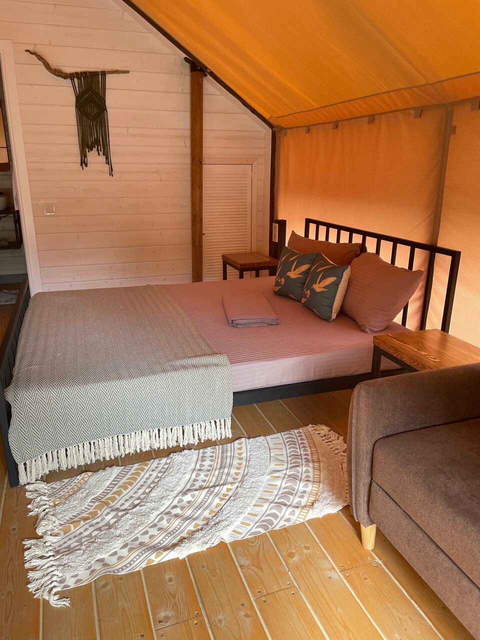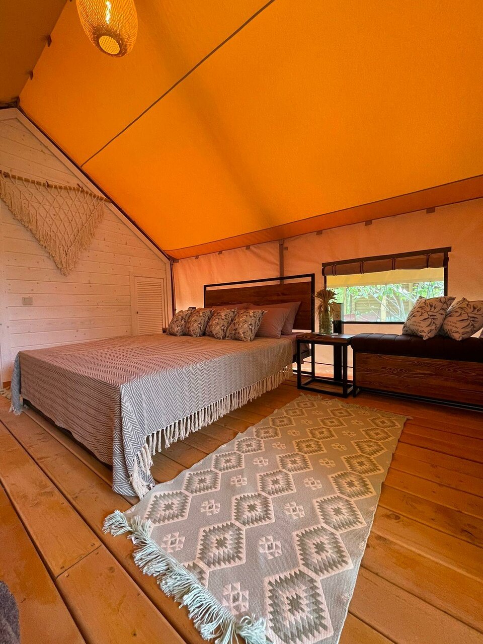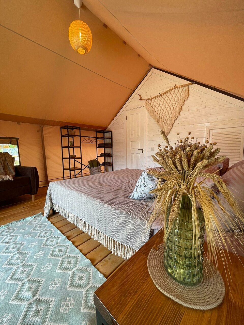 Замечательное место будет, когда все закончат. Сейчас ещё многое готовится, но персонал ОЧЕНЬ клиентоориентирован. Это подкупает, а также прекрасная природа, тишина, воздух. Жаль, что нельзя с животными. Очень приятно, что на море возят, дорога на гольфкаре- отдельное впечатление. Завтрак очень сытный, вкусный и красивый! В ресторане очень приятно и вкусно, в меню хотелось бы больше мясных или рыбных блюд. Палатка очень комфортная, декор, текстиль, все соответствует общей идее. Было безумно комфортно завернуться в плед и ночью в беседке наслаждаться общением под звуки природы. Пение птиц на рассвете прекрасно! Уезжать совсем не хотелось. Отличное место выйти из безумного мира суеты и работы и окунуться в свежесть и красоту природы! Отдельное спасибо за приветственный комплимент и вино!