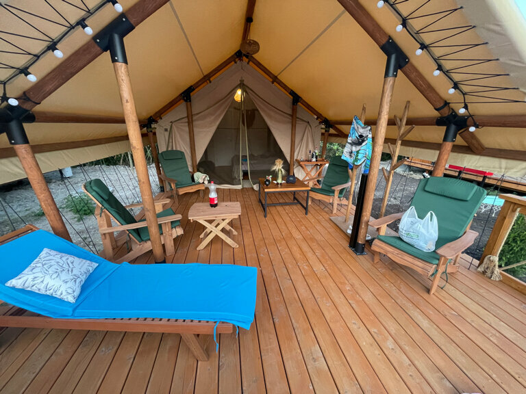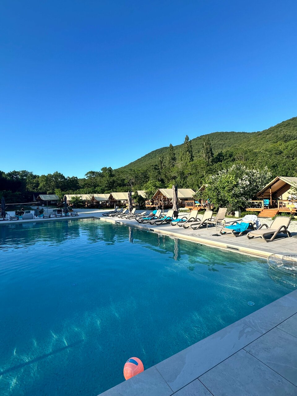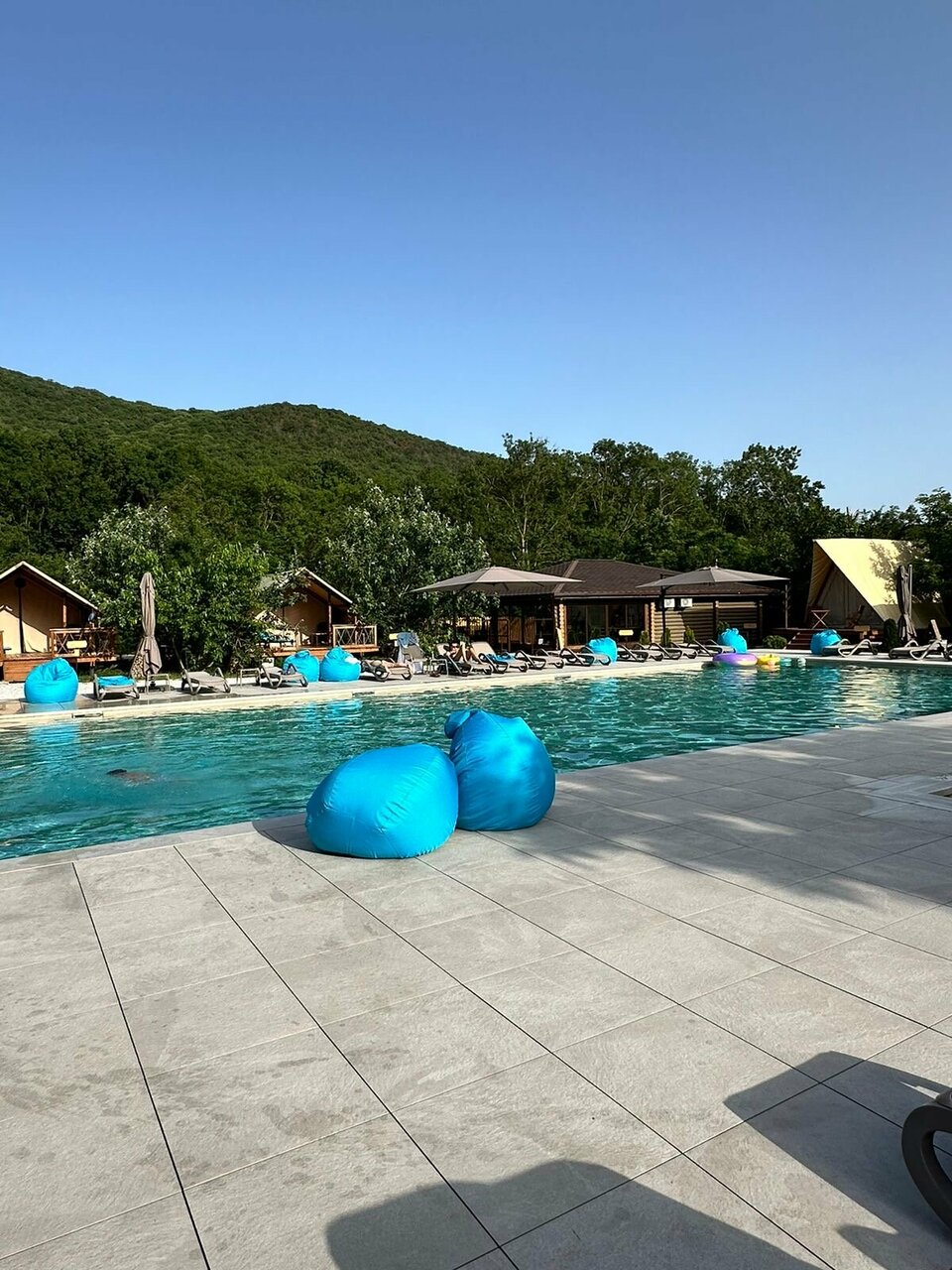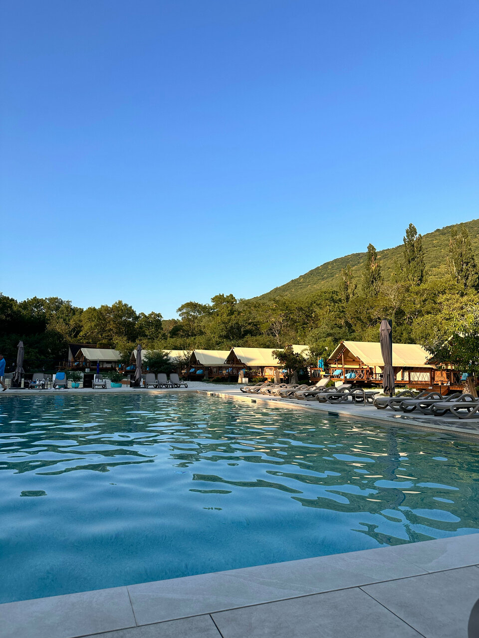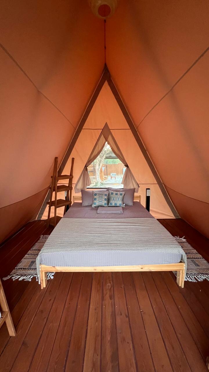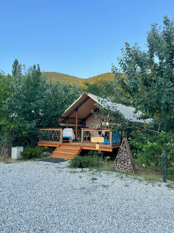 Останавливались в данном месте с 13.09 по 15.09. Бронировали глэмпинг. Нас заселили в домик 6. Внутри чисто, матрас неплохой, есть все необходимое. На террасе кресла, лежак, можно уютно посидеть вечером. Хороший бассейн, глубина 1.3 метра, чистый. Плитку вокруг бассейна и лежаки регулярно мыли. В стоимость включен завтрак. Ассортимент небольшой, но необходимое есть. По вкусу неплохо. В ресторане один день ужинали, брали два вида пасты. Обе были вкусные, порции хорошие. Главная фишка отеля это трансфер на море на гольф каре. Спасибо за это! Очень удобно и быстро. С радостью будем приезжать к вам еще