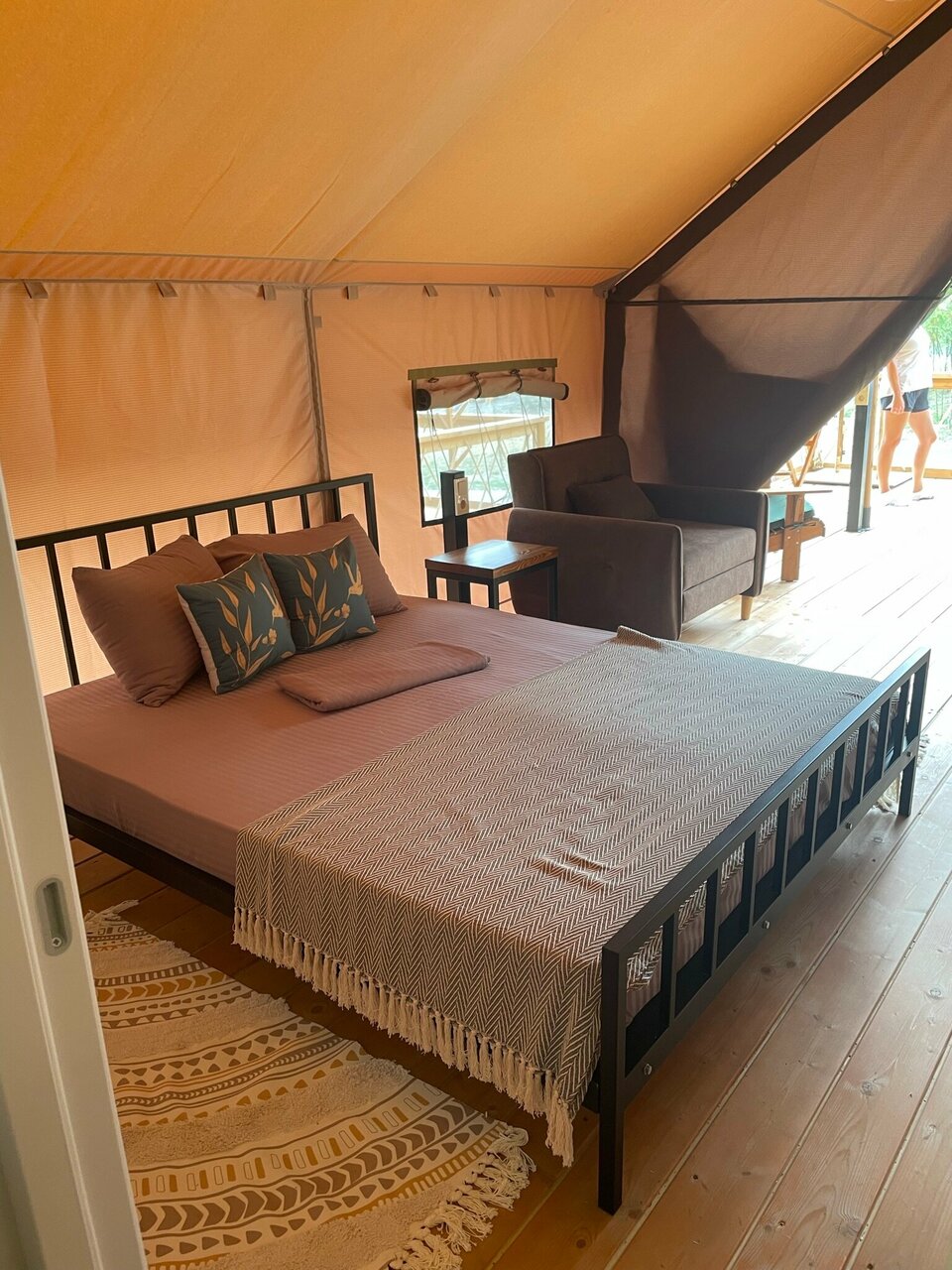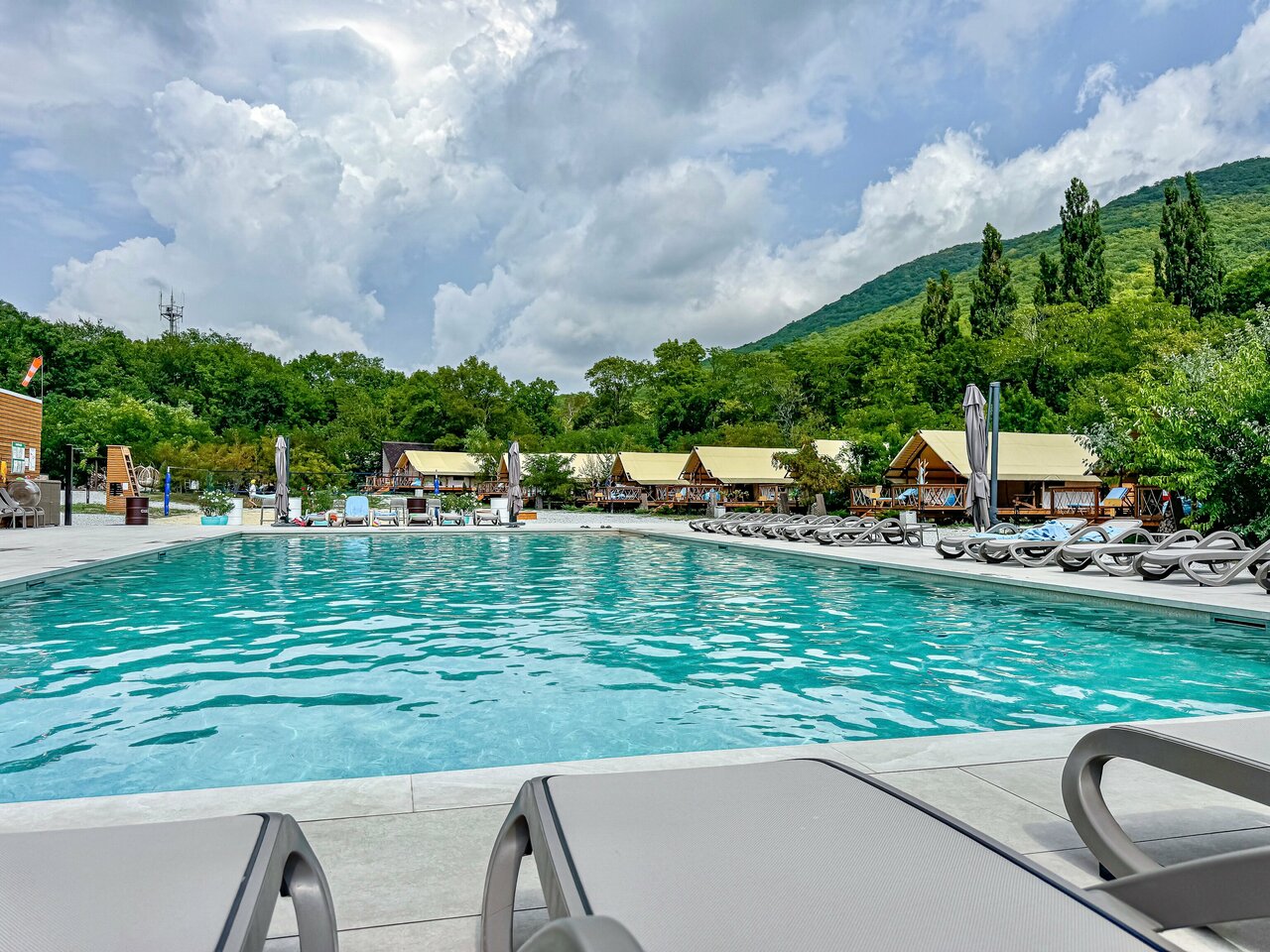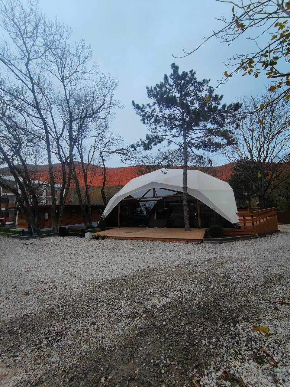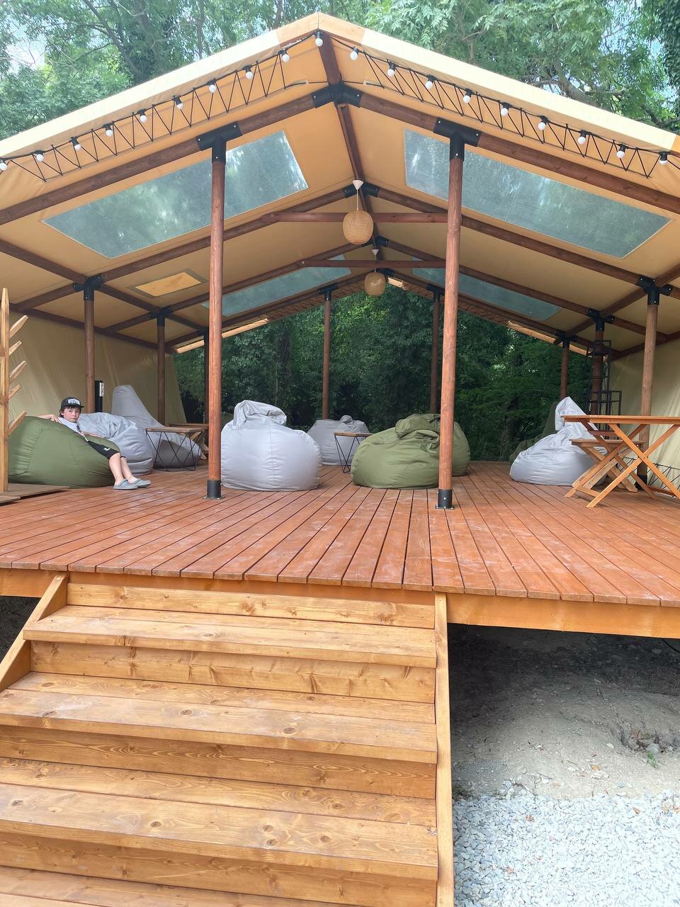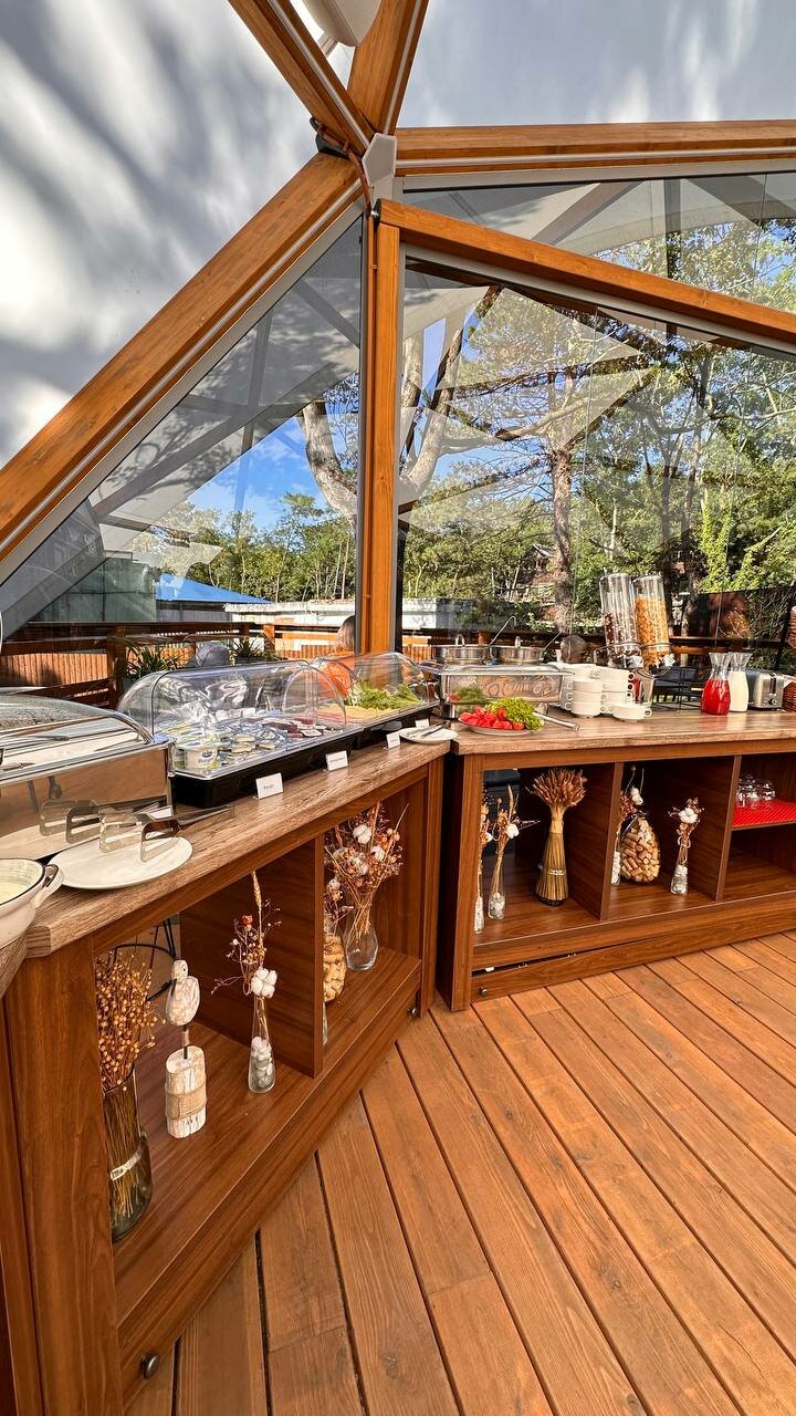 Останавливались в данном месте с 13.09 по 15.09. Бронировали глэмпинг. Нас заселили в домик 6. Внутри чисто, матрас неплохой, есть все необходимое. На террасе кресла, лежак, можно уютно посидеть вечером. Хороший бассейн, глубина 1.3 метра, чистый. Плитку вокруг бассейна и лежаки регулярно мыли. В стоимость включен завтрак. Ассортимент небольшой, но необходимое есть. По вкусу неплохо. В ресторане один день ужинали, брали два вида пасты. Обе были вкусные, порции хорошие. Главная фишка отеля это трансфер на море на гольф каре. Спасибо за это! Очень удобно и быстро. С радостью будем приезжать к вам еще