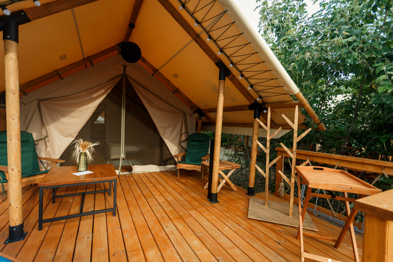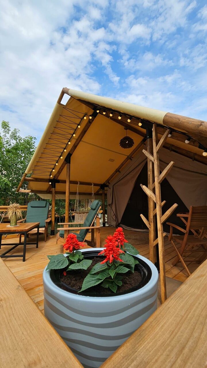 Отдыхали в отеле с 1 по 8 июля. Полный восторг!!! Для нас это новый формат — все удобства на природе, очень понравилось. Фумигаторы отлично защищают от комаров в палатках и даже на террасах. Большой чистый и глубокий бассейн был к нашим услугам весь день, есть и детский отдельный. Отличное питание, спасибо нашим поваром! Большое спасибо всему персоналу отеля, внимательные, заботливые , вежливые девочки и ребята, так держать! В отеле есть отличная песчаная волейбольная площадка , всегда можно размяться, а в тени деревьев тихо отдохнуть в подвесных креслах и гамаках. Есть массажный кабинет и прекрасный профессиональный массажист. Немного не хватило размера холодильника, очень жарко и туда надо уместить и напитки, и фрукты. В общем всё было прекрасно, будем рекомендовать отель своим друзьям и сами постараемся приехать ещё раз.