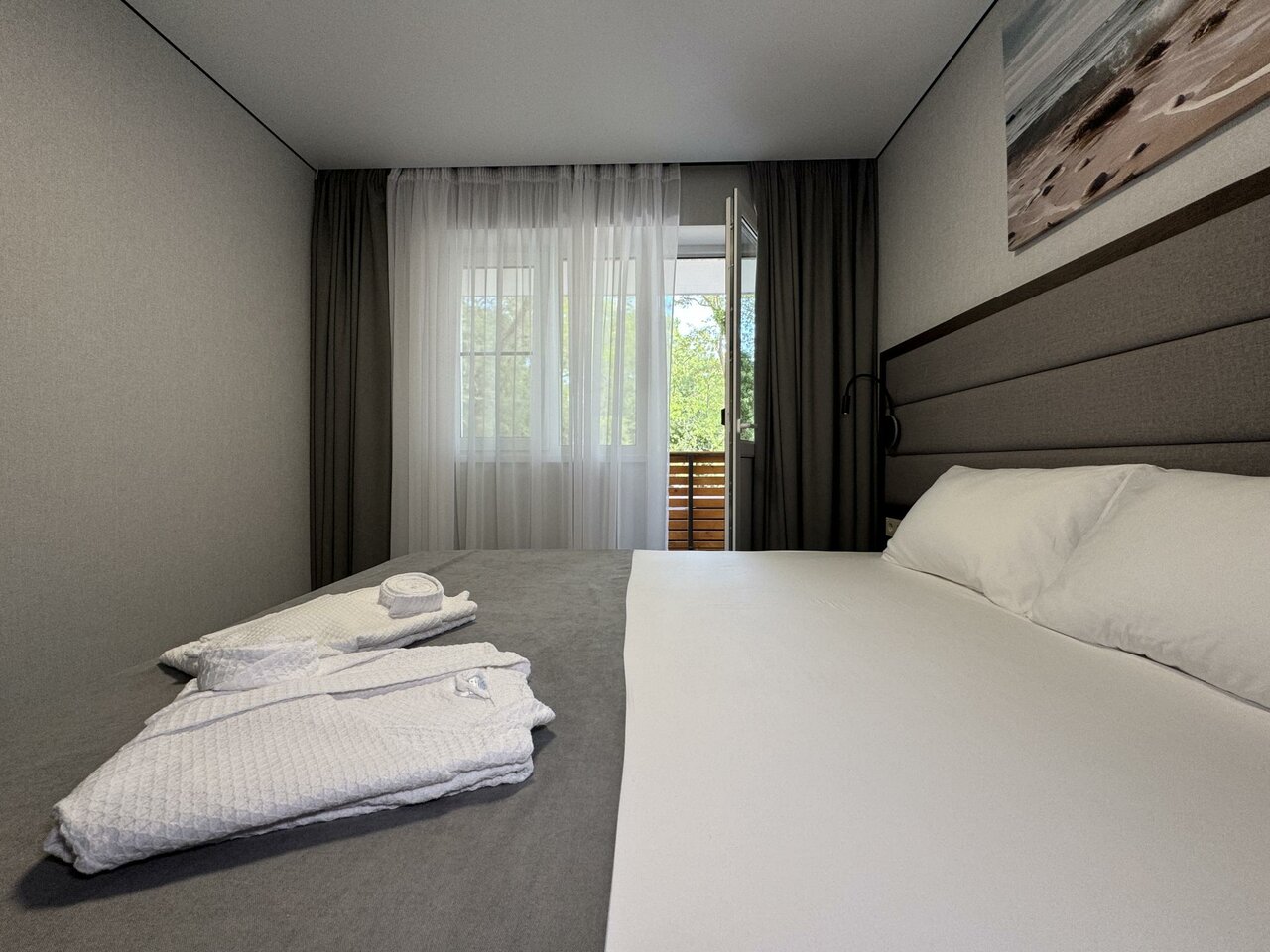 Гостиница предлагает комфортные номера с кондиционером, Wi-Fi, телевизором, холодильником и звукоизоляцией. На территории: два бассейна (включая открытый), ресторан, бар у бассейна, баня, сад и собственный галечный пляж. Для гостей — бесплатные парковка, трансфер до пляжа, завтрак, а также услуги консьержа и прачечной.