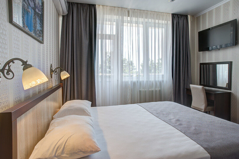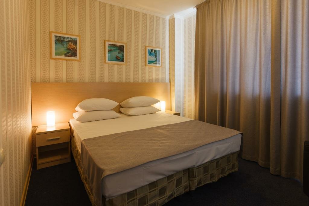 Были на корпоративе в октябре. Сама гостиница показалась твёрдые три заезды — хорошие виды и достаточно пространства в люксах на 4 этаже, неплохой ресепшен и Wi-Fi. Но сама обстановка в номерах даже люкс — усталые 00-е. Если жить не в основном здании — совсем страдание по условиям. Еду описали ловко так: Кормежка как в лучших пионерских лагерях — сытно и без изысков. Набережная в двух шагах и вид из окон тоже шикарный. Ну как-то так