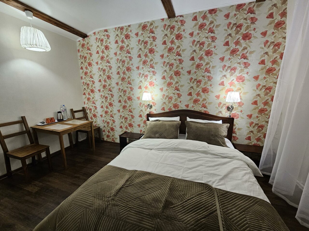 Очень уютно. Кровати мягкие. Приветливый персонал. В течение 15минут забрали из аэропорта. В номере есть небольшой чайник, чай, сахар, вода. Всё чисто и аккуратно. Рекомендую!
