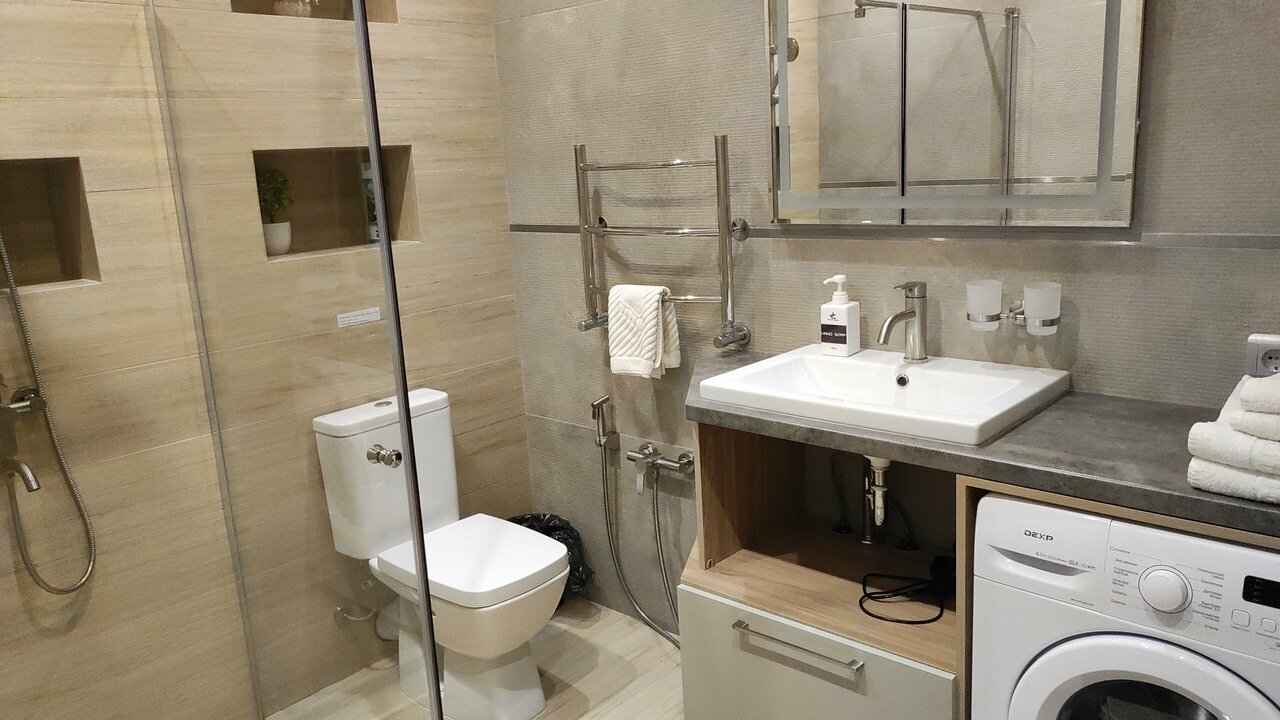 - Наличие всех необходимых удобств (стиральная машинка, микроволновка, утюг, Wi-Fi).