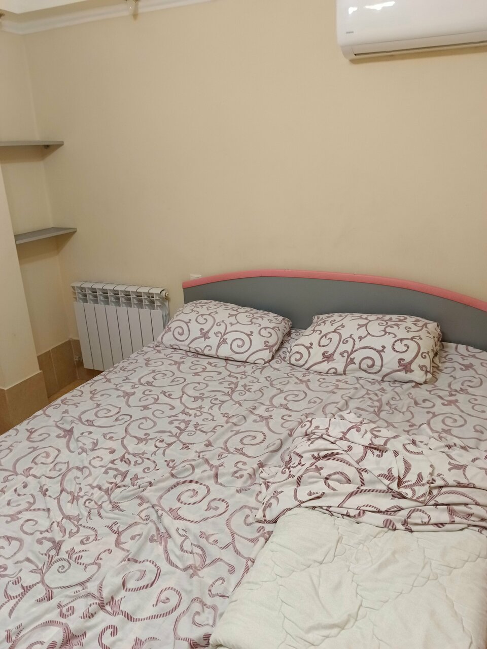 Двуспальная кровать, рабочий стол, телевизор, холодильник, сплит-система. душ, набор полотенец.