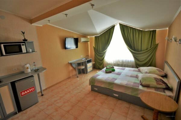 Услуги: — Номера от 2500 до 4500 ₽/ночь — Кондиционер, холодильник, телевизор, Wi-Fi — Кухонный уголок, микроволновка, фен, утюг — Парковка, интернет в номерах — Питание не включено — Удобное расположение: менее 1 км до центра