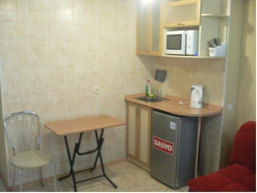Останавливалась на одну ночь. Все приятно выглядит и близко к центру. Хороший дворик. Фен, полотенца, кондей, мыло, чайник, посуда, холодильник и прочее есть