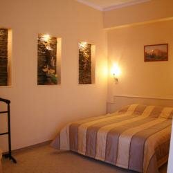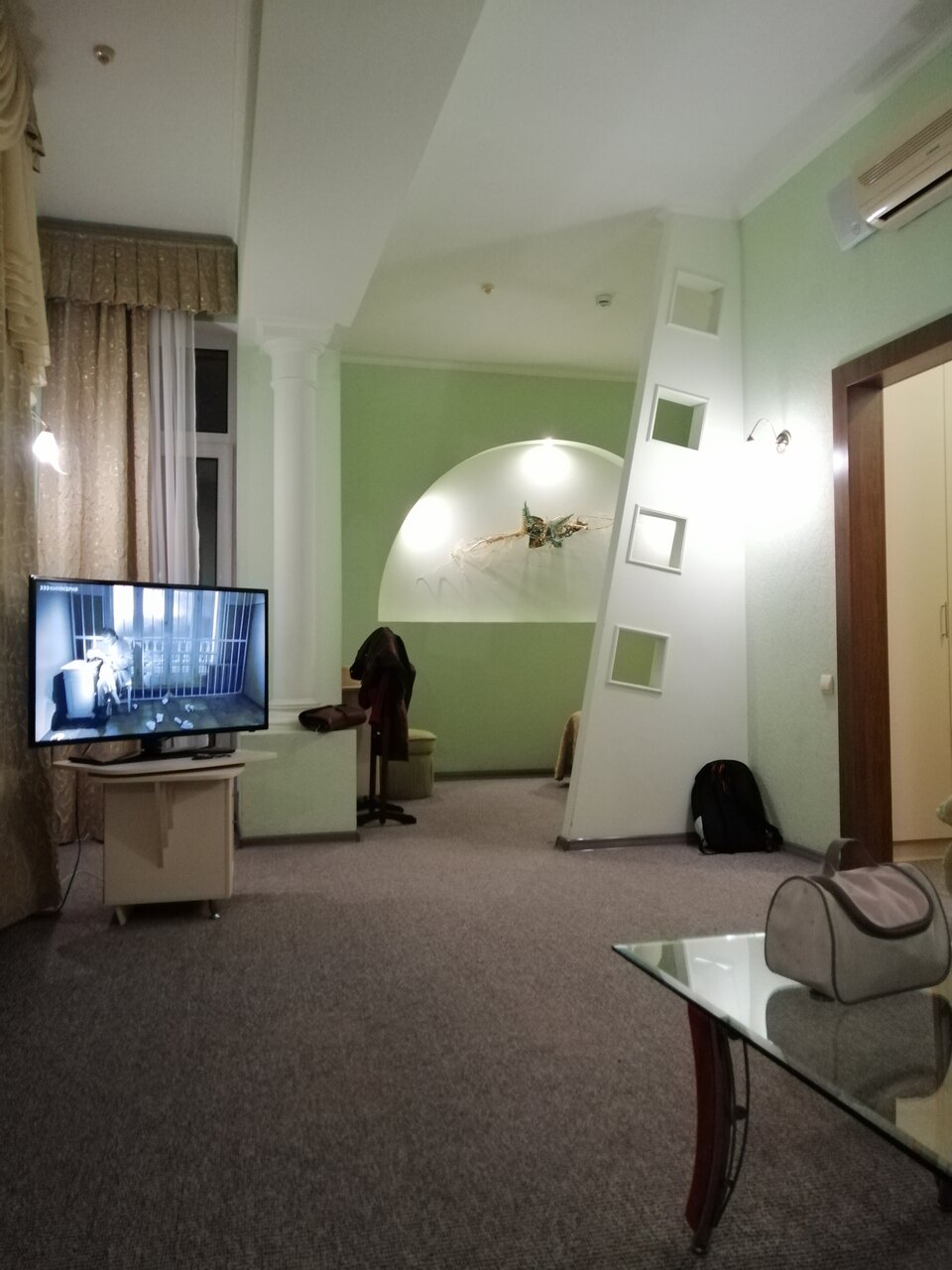 Отель полностью устроил, как расположением, так и проживанием в нем. Номер стандарт 2-х местн. С бол.кроватью, все чисто, уборка каждый день, смена полотенец. Вода при заезде была 2 Бут. 0,5 мл., Но разово. Жили 3 ночёвки. Завтраки комплекс 3 вар., Вполне сытные и вкусные. Кофе американо, все гуд. Единственный минус это парковка, она небольшая, в основном занята так понимаю где кафе сотрудниками или хозяевами, и платная, 150 р. Сутки. Так если примерно то вместимость под 5-6 машин. Расположение недалеко от Симфероп.ботанического сада, но там разруха и ничто не делается властями, хотя парк имел бы лицо города. Автовокзал недалеко и выезд на трассу в сторону ЮБК. Рядом корпус местного завода электроинструмента Фиолент, есть фирм.магазин. Напротив приличный ресторан. В целом для командировки отличное место с дальнейшей логистикой для рабочих маршрутов. Все документы предоставляют.