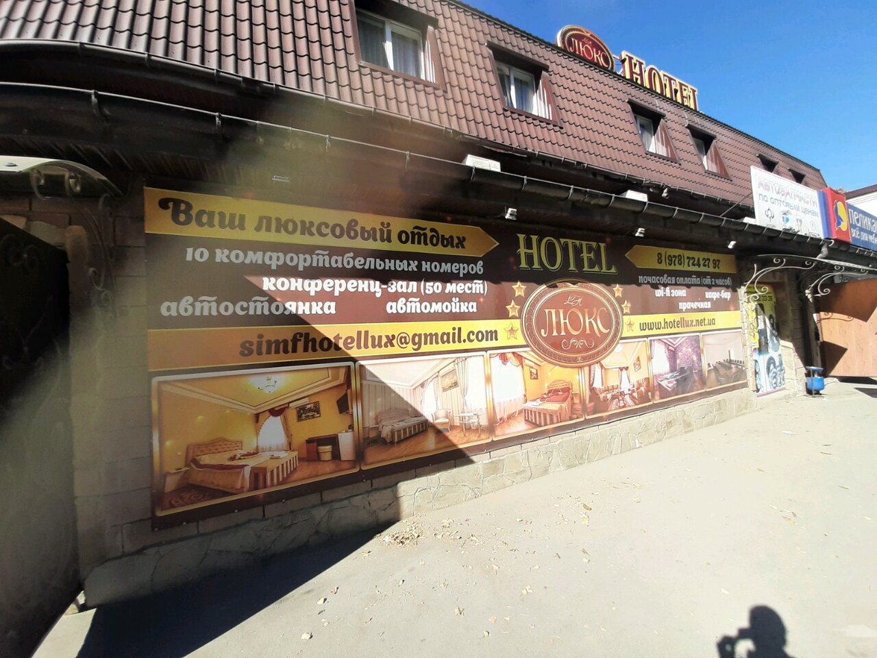 Гостиница «Люкс» (Симферополь, ул. Москалёва, 11) — мини-отель категории 2★ с круглосуточным обслуживанием. Предлагает номера с кондиционером, Wi-Fi, телевизором, холодильником и феном. В стоимость проживания (2000–3500 ₽/ночь) не входит питание, но доступны микроволновка, чайник и посуда.