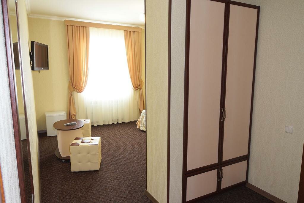 Супер мини гостиница, чистый уютный мебель идеальное бельё, куллер в холле, на первом этаже кафе и без проблем можно припорковать машину. Профессиональные администрация