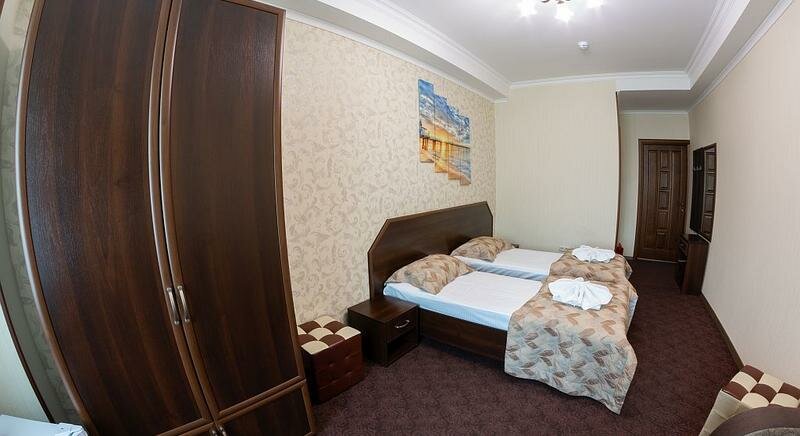 Уютная гостиница! В номере чисто, приятно, удобно. Вкусно кормят. Есть необходимое:фен, телевизор, холодильник. Дружелюбный и приветливый персонал. Недалеко от отеля есть торговый центр, магазины, рынок. Вернёмся сюда ещё.