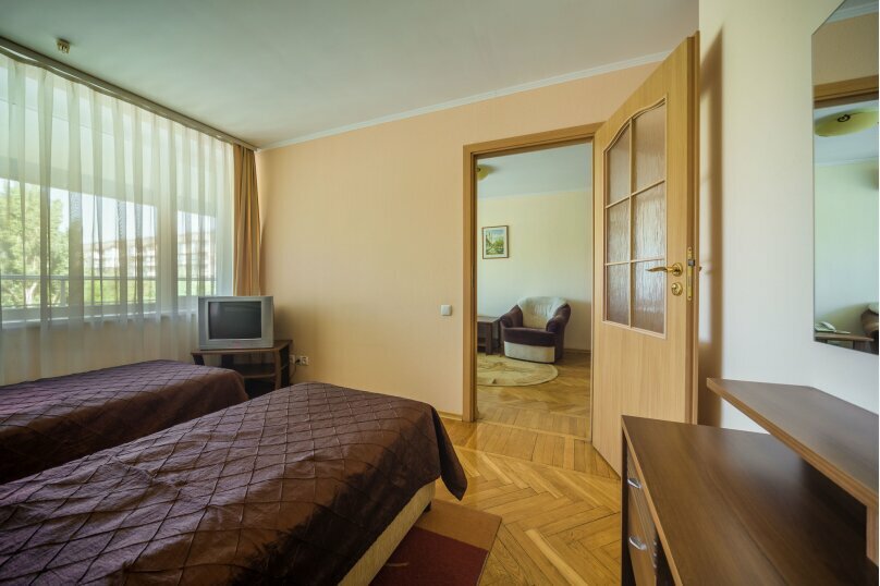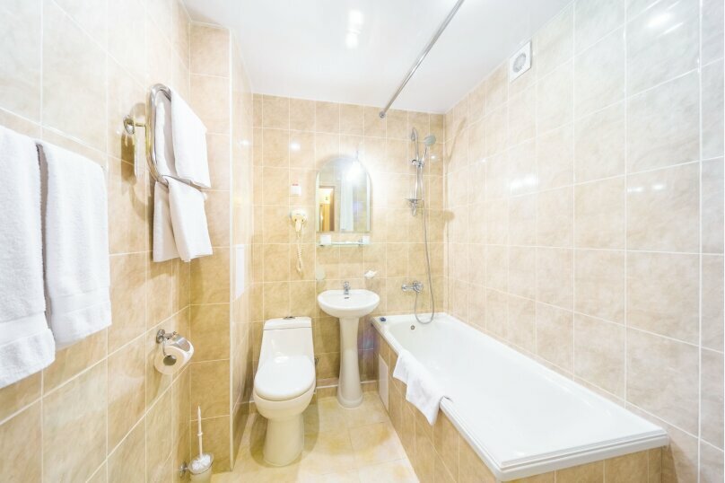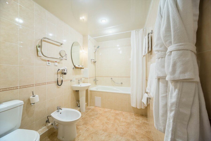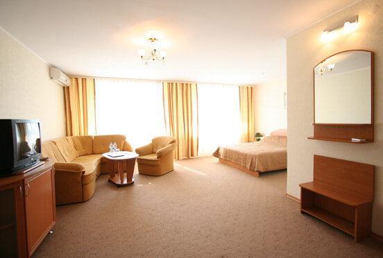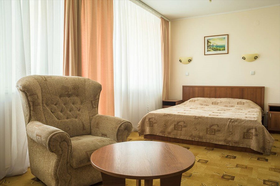 Удобства: — Номера с кондиционером, Wi-Fi, телевизором, холодильником, феном. — 2 ресторана, столовая, бар, салон красоты, бизнес-центр, конференц-зал. — Бесплатная парковка, платный трансфер (аэропорт, вокзал, пляж и др.). — Услуги: химчистка, прачечная, прокат авто, камера хранения, сейф. — Возможно проживание с животными (платно).