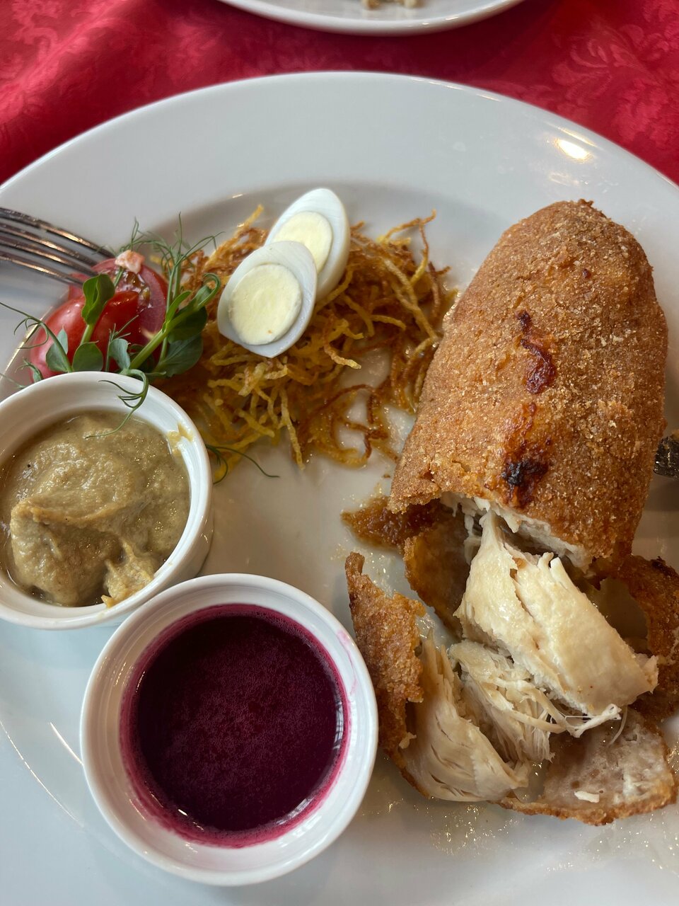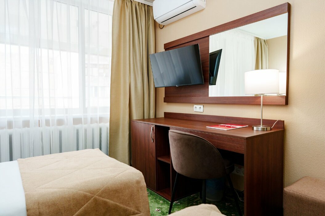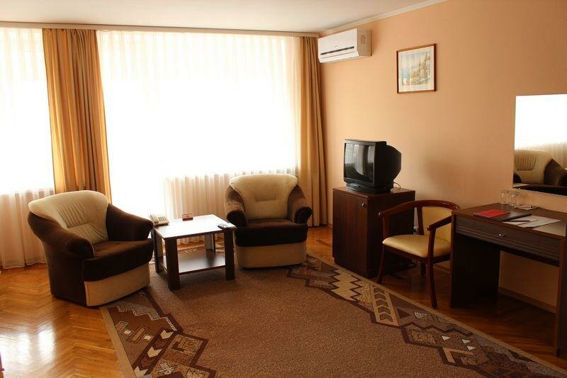 Номера выглядят немного в совдеповском стили хоть и после ремонта, расположение в центре рядом с рекой где есть прогулочные скверы. Завтраки на любой вкус, выбор очень большой мясные блюда овощи, фрукты, разные напитки.