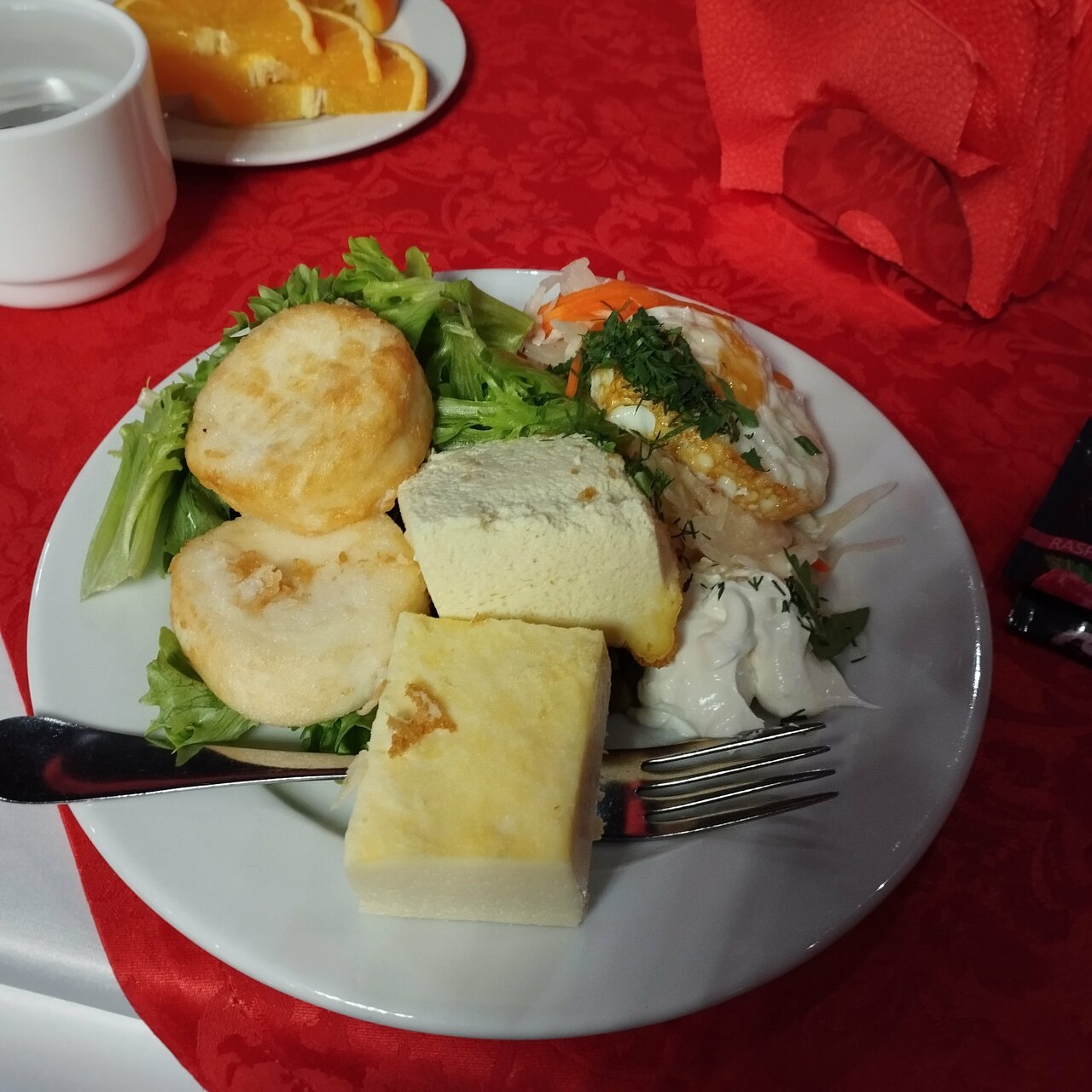 Оцениваю кухню а не всю гостиницу. Дважды был на фуршетах. Еда средняя, оливье в торталетках это просто кошмар дикий — пропавший, невкусный, некачественный. Стоит обратить внимание Роспотребнадзора на кухню.